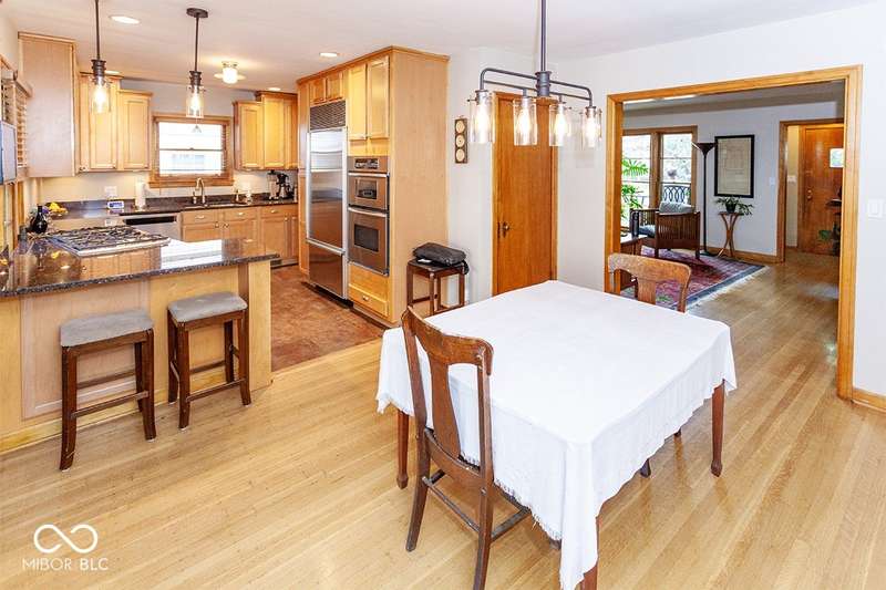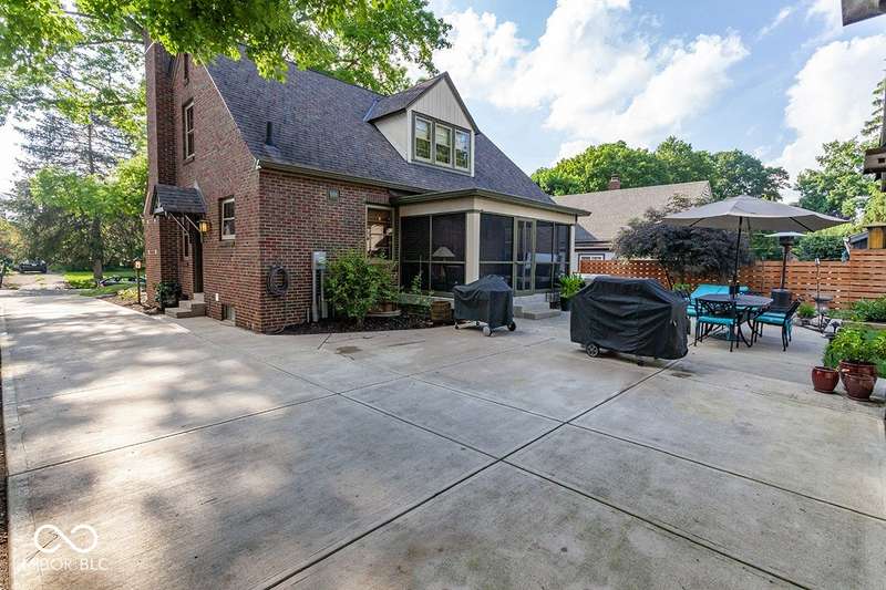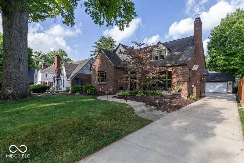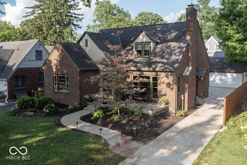 Dripping in character and loaded with updates, this 1940 Cape Cod is a rare find. With over 3,000 square feet of finished space, this 3 bed, 3 full bath home perfectly balances preserved charm and thoughtful renovation. Original hardwoods, vintage hardware, and original copper mail slot set the tone - while major upgrades like new plumbing, electrical, rebuilt windows, and an RO water system bring peace of mind. The chef's kitchen stuns with a Sub-Zero fridge, stainless KitchenAid appliances, and sleek finishes. Cozy up by the wood-burning fireplace framed by built-ins, or head downstairs to your finished basement with wet bar, surround-sound theater area, and space to host just about anything. Out back, it's a full-on retreat: lush landscaping, landscape lighting, a fire pit, screened-in porch, and hot tub. The garage is heated, EV-ready, and ready for any Indiana winter. Tucked on a quiet, tree-lined street just steps from Butler University and legendary Hinkle Fieldhouse, this is more than a home - it's a rare blend of history, style, and substance.