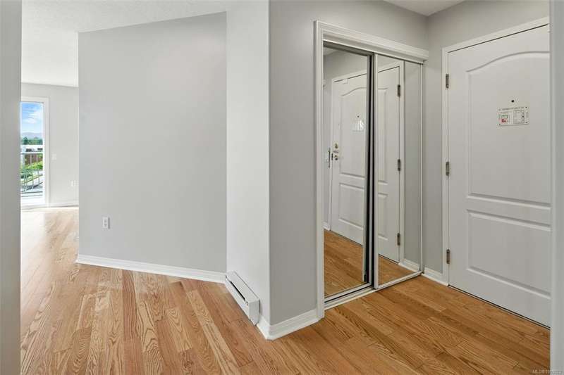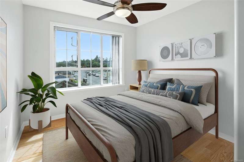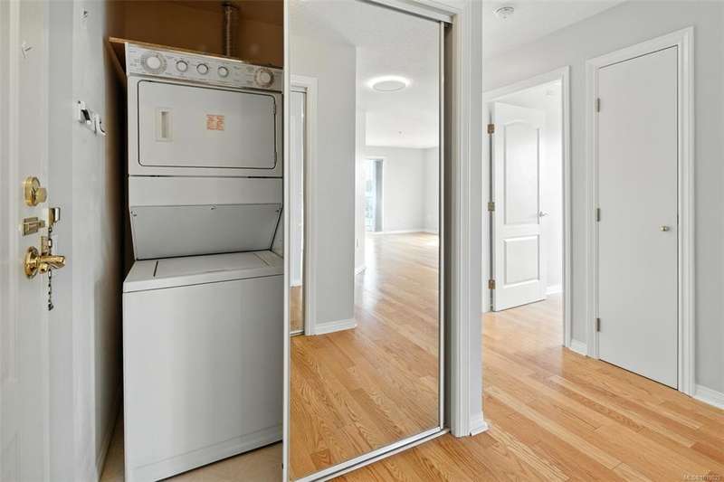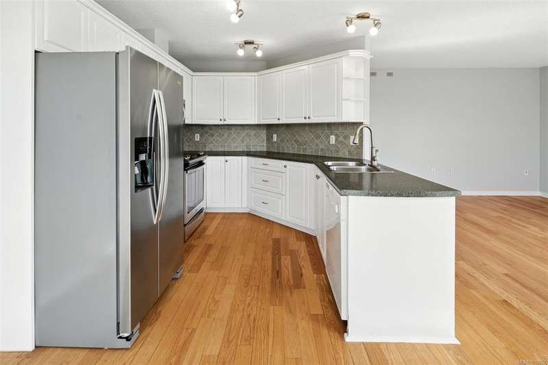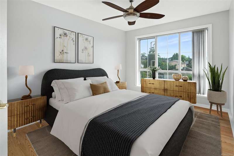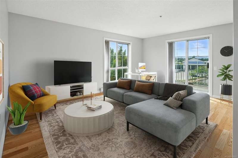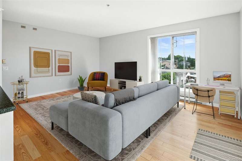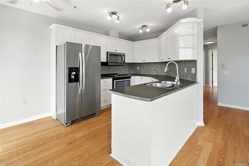 Welcome to Montague House! This top floor, southwest-facing suite is bathed in natural light, creating a bright and welcoming living space. Freshly painted, this spacious 2 bedroom layout features an open concept design, perfect for comfortable living and entertaining friends and family. Located in a well-maintained 55+ building, you'll enjoy access to fantastic amenities, including a social room, exercise area, and a rentable guest suite. Conveniently situated near trails along the Gorge, parks, shopping, banks, the library, coffee shops, and groceries, with transportation right at your doorstep. The building offers covered visitor parking, additional storage, and is well managed, with a waitlist for resident parking. One small furry friend (up to 25 lbs) is welcome. This is an ideal choice for downsizing or retirement, combining comfort and convenience in this exceptional community! PRICED REMARKABLY WELL FOR A PROMPT SALE!