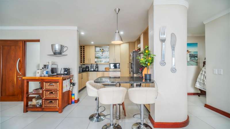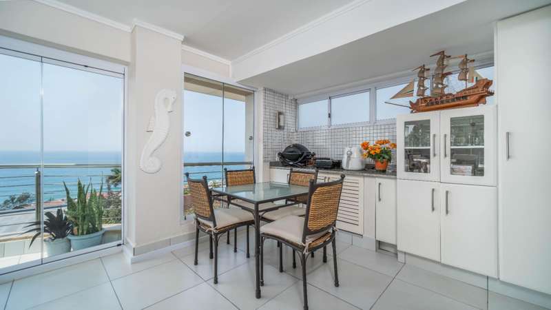 Perched high on the top floor within sought-after Sabuti within Simbithi Eco-Estate, this corner penthouse offers the ultimate in privacy, with no neighbors above and complete seclusion on all sides. Positioned directly next to a quiet residents?ÇÖ pool, it provides the perfect blend of exclusivity and convenience, ideal for those seeking a tranquil coastal retreat. The spacious enclosed patio maximizes natural light and panoramic views through farmless glass stacking doors, with seamless flow from the modern open-plan living areas to the enclosed patio. The stylish indoor-outdoor space is where you can entertain or simply soak up the spectacular ocean vistas, stretching uninterrupted views from Ballito to Sheffield Beach. Accommodation consists of 3 bedrooms and 2 spacious bathrooms both with bath and shower, the over-size master suite is ocean facing with access to a balcony through stacking doors. Practical features enhance everyday living, including an inverter for back-up power and a recently serviced water osmosis system for purified water. With its unbeatable position, contemporary finishes, and breathtaking sea views, this penthouse is a rare coastal gem.