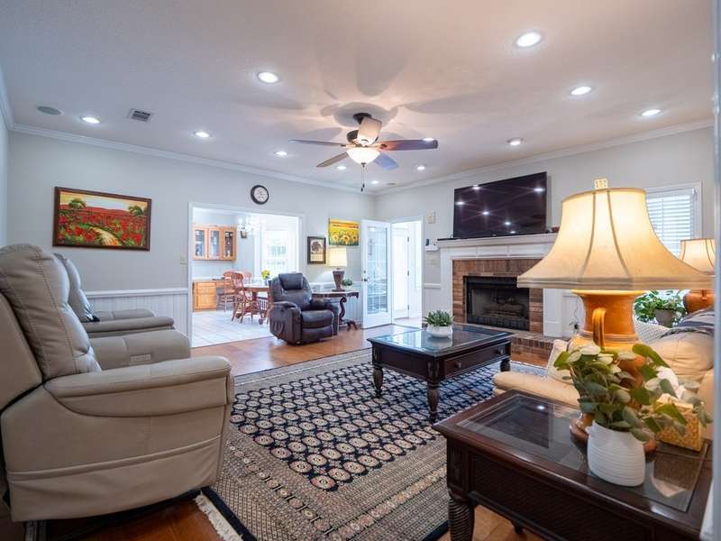 This gorgeous five-bedroom, three-bath, two-story residence is perfectly situated in the heart of Valdosta, just minutes from South Georgia Medical Center, Moody Air Force Base, Valdosta State University, and plenty of shopping and dining. Nestled on nearly half an acre, the property offers a versatile wired workshop or third-car garage, an spacious office, and two flexible bonus rooms ideal for a home gym, craft space, or playroom. The interior boasts a large living room with a fireplace, a bright breakfast area, and a formal dining room designed for gatherings. A beautiful sunroom overlooks the expansive backyard and patio, creating an elegant setting for entertaining. The inviting primary suite features a custom-built walk-in closet, while rich hardwood floors flow throughout the main living areas. A generously sized laundry room with abundant storage adds both convenience and sophistication to this exceptional home. For additional peace of mind, this home has a new roof and both HVACs are new as well!