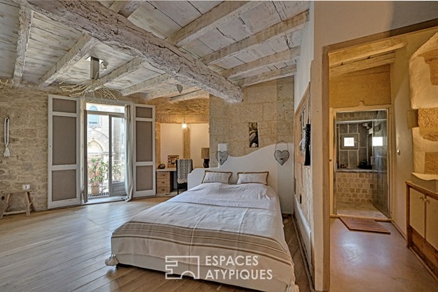 The first floor reveals itself as an intimate setting, supported by a suite of nearly 40sqm with ample volumes, extended by a balcony opening onto the village square and its church.