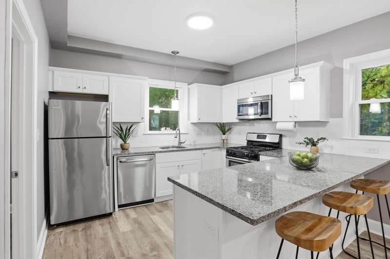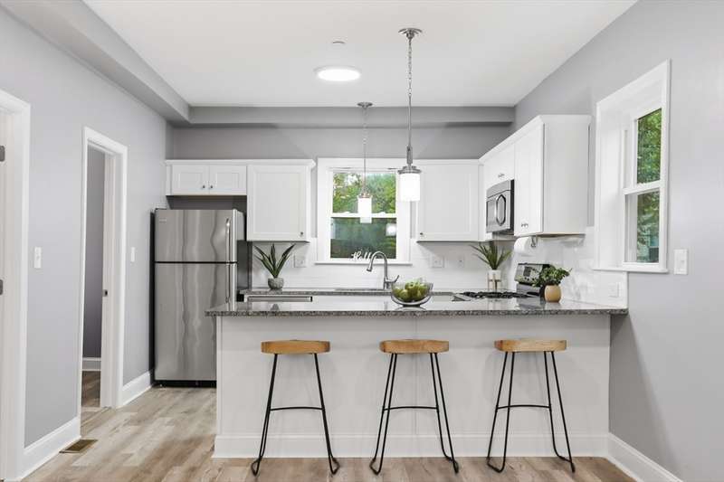 FHA/VA APPROVED! This updated 2-bedroom, 1-bath condo features fresh paint throughout and all new flooring. The open-concept layout includes a modern kitchen with granite countertops, gas cooking, and ample cabinet space. The spacious living room flows seamlessly for entertaining or relaxing at home. Enjoy central air, in-unit laundry, and extra basement storage for added convenience. Two comfortable bedrooms and a full bath complete the space. Located just steps from downtown Peabody’s shops, restaurants, and parks, yet tucked away on a quiet side street with easy access to public transportation. Includes 2 off-street parking spaces. A perfect blend of comfort and convenience! Showings start immediately — book your private showing today!