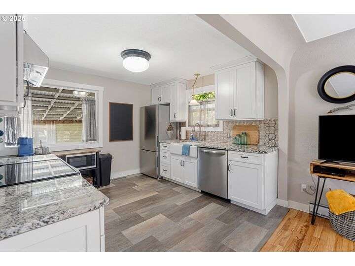 Welcome to this charming home that has been beautifully updated inside & out. Step into the bright and inviting living room, where large picture windows fill the space with natural light and highlight the refinished hardwood floors. Both bedrooms feature multiple windows, creating a warm and airy feel throughout.The spacious kitchen offers plenty of room to cook and gather, while the updated bathroom brings modern style & comfort. Brand new roof just installed! Come tour this incredible home!