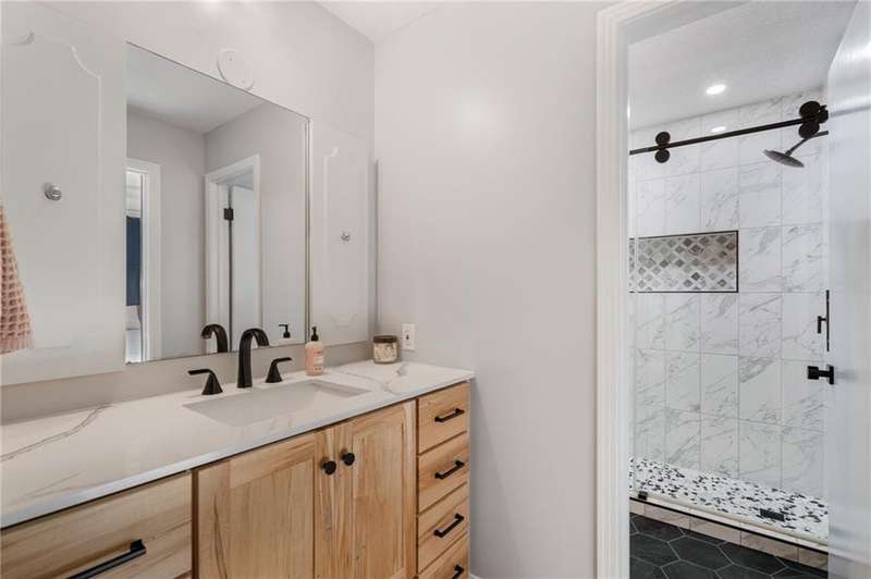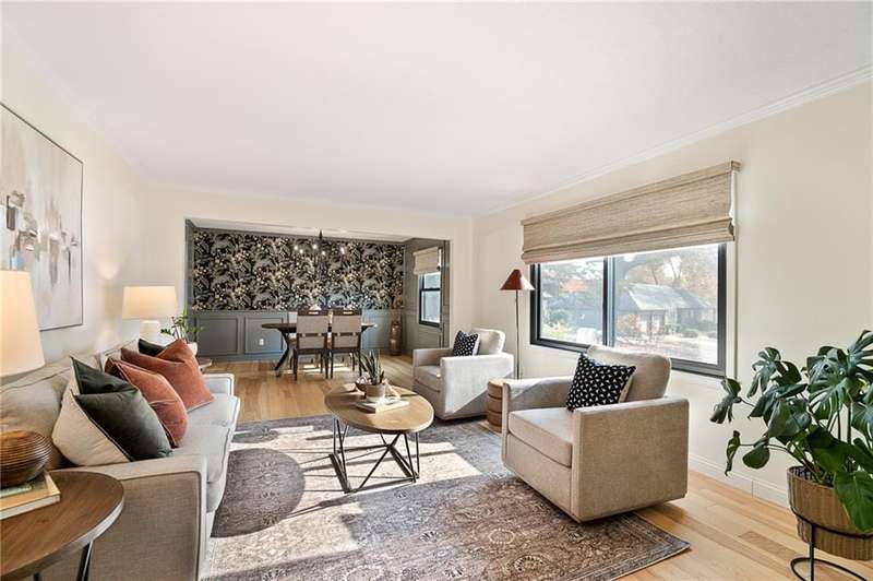 Stunning ranch/1.5 story in sought after Pinehurst subdivision. Welcome to this 5bd/3.1ba/2 car garage main level living home nestled on a quiet cul-de-sac. Light, bright and ah-mazing! Sitting on over a 1/2 acre lot, this park-like property is perfect for quiet family nights or loud exciting gatherings w/friends. Step inside to new engineered wood floors (gorgeous) in entry, formal living and dining room, family room and hallway to bedrooms! New carpet in all bedrooms (no animals or shoes have walked on the carpets:); staircase features designer carpet leading up to 2nd level adding a touch of luxury to the home's updated style. New interior/exterior paint, new Renewal by Anderson windows on front of house (adds so much natural light), new windows in family room, new light fixtures, new canned lights in family room, textured ceilings thru-out (not popcorn!) and gorgeous gas fireplace. Kitchen boasts granite counters, stainless steel appliances, double oven, and eat-in area. Elegant master ensuite w/sliding door, remodeled shower and new gorgeous vanity; laundry room, two generous-sized bedrooms on main level and hall bath complete the main level. Upstairs you'll find two large bedrooms w/walk-in closets and jack and jill bath, perfect for guest bedrooms, office, craft room, play room all overlooking the gorgeous backyard park! This home continues to impress w/epoxy-coated floors in lower level recreation room and new half bath. Tons of storage in lower level. Two car garage has epoxy-coated floor, too! Easy access to highways, close to award-winning Shawnee Mission schools, shopping, restaurants and more! See it before it's gone. **All information deem reliable but not guaranteed. Buyer and buyer's agent to verify all information, including measurements, during inspection period.**