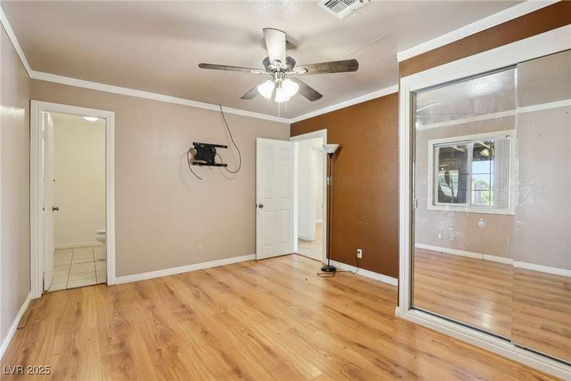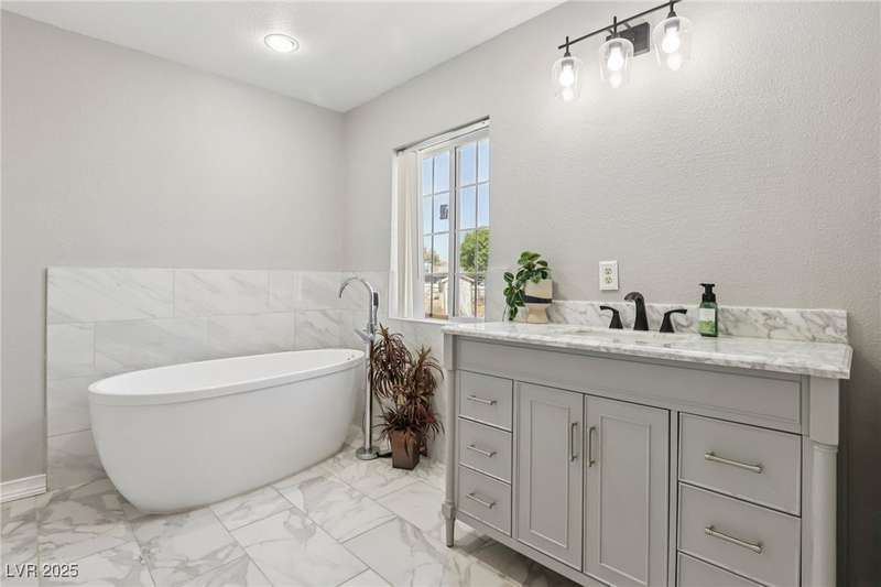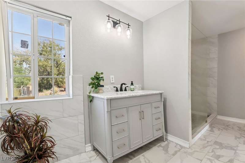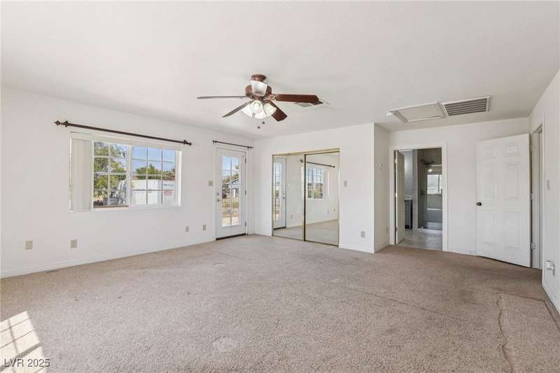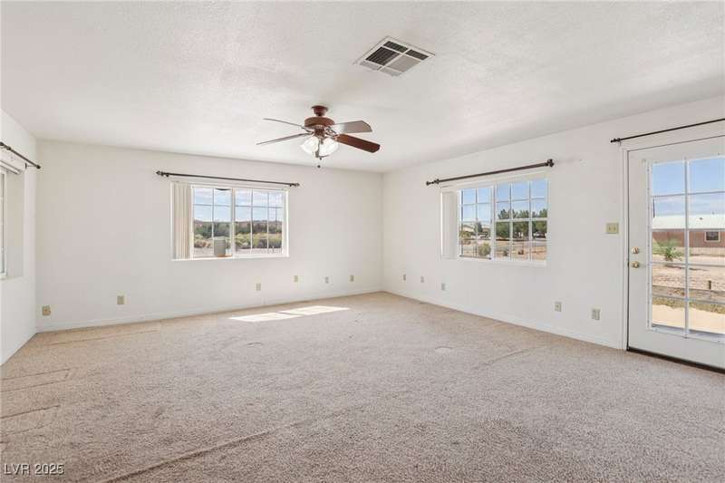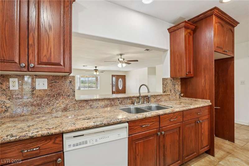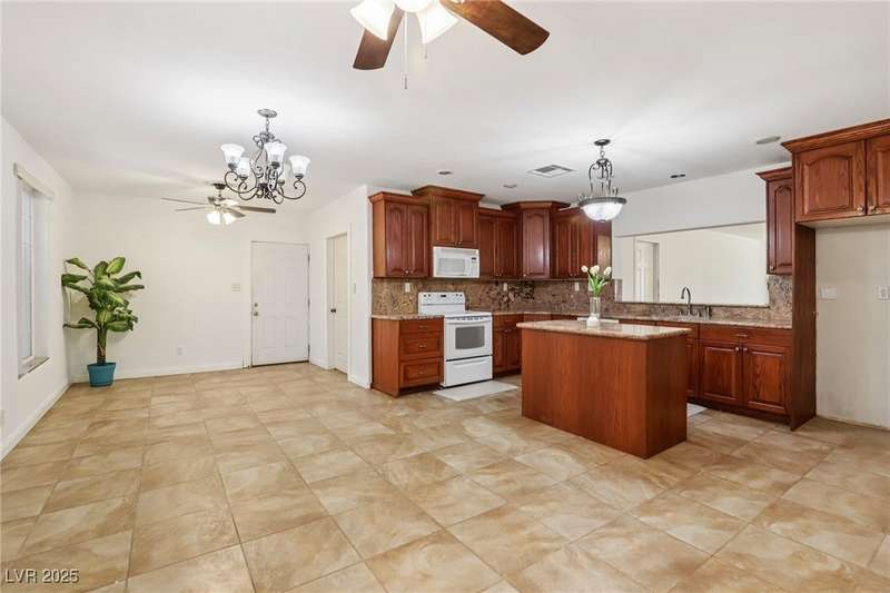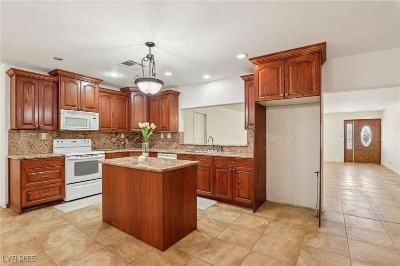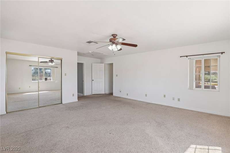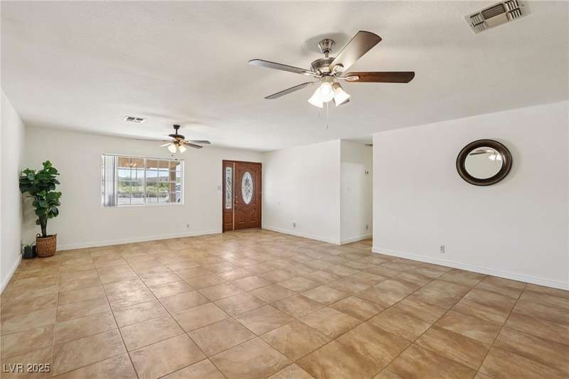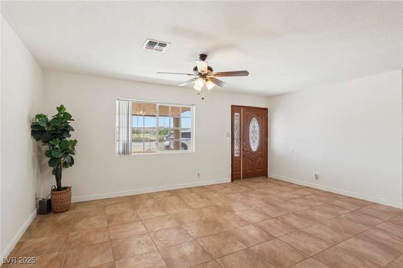 Welcome to Moapa Valley! This single-story, 4 bdrm home is situated on over 1/2 an acre, offering ample space for a pool, vehicles, boats, ATVs, and endless possibilities to create your dream backyard. Located just 50 miles N of Las Vegas and less than 1 mile from I-15, you'll enjoy a short commute, easy freeway access and no gridlocked traffic! The home features an open floor plan, oversized remodeled kitchen, with granite countertops, custom cabinets, island, and a generously sized walk-in pantry. The main bath includes a custom-tiled shower. Throughout the home, you'll find tile flooring with the exception of carpeting in the primary bedroom, which also boasts outside access and a large, remodeled bath with separate sinks, quartz countertops, a modern standalone bathtub, and walk-in shower. Experience beautiful sunsets, mature landscaping, privacy, and quiet rural living. A community center and park are also conveniently located nearby. You truly have to see this home for yourself!
