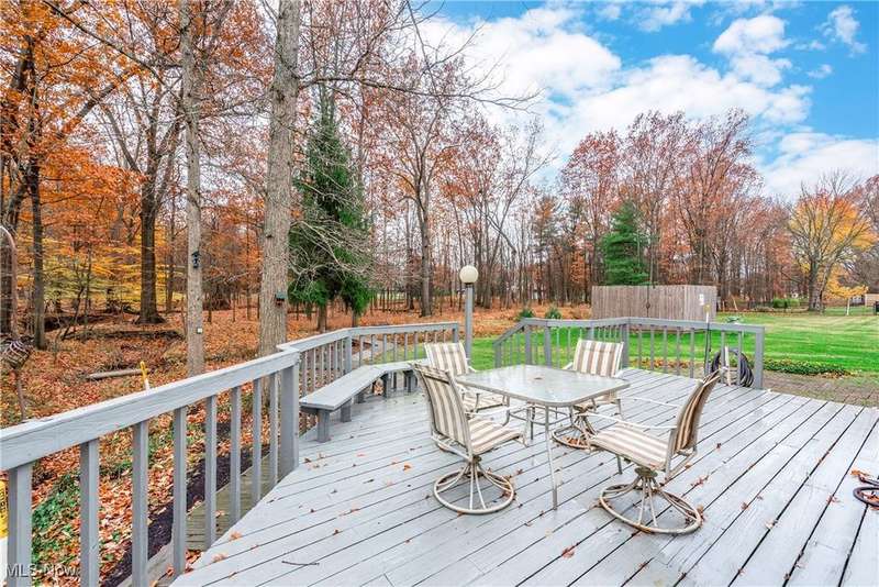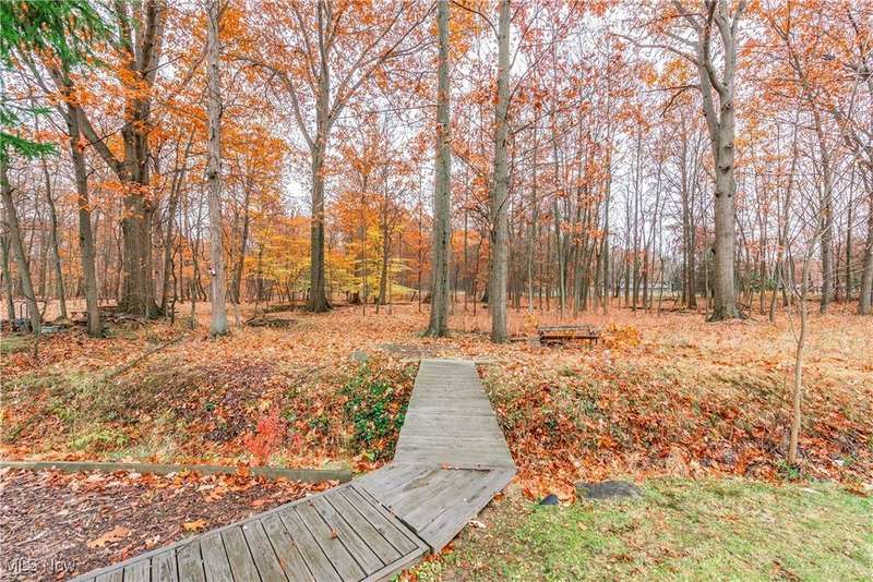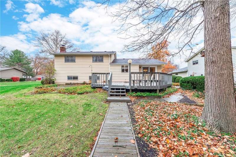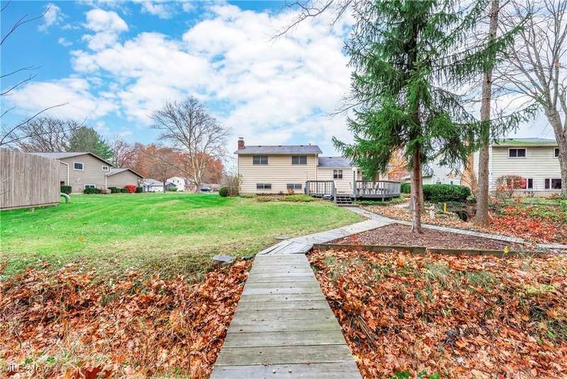 Immaculately maintained and full of charm, this fantastic, 3-level split is perfectly situated in a wonderful neighborhood on a picturesque lot. From the moment you arrive, you'll appreciate the pride of ownership and thoughtful care throughout the home. At the heart of the main level is a spacious living room featuring a panoramic picture window that brings the outside in. The adjacent eat-in kitchen offers serene views from the sink, a generously sized pantry and plenty of space for everyday dining. The formal dining room-flooded with natural light-features direct access to the expansive back deck, perfect for seamless indoor/outdoor entertaining. Upstairs, you'll find three generously sized bedrooms, each offering ample closet space, along with a large full bathroom with a double vanity and excellent storage. The lower level provides a cozy and expansive family room anchored by a striking full brick wall fireplace, as well as a separate shower and half-bath setup that adds flexibility for guests or daily routines. A spacious laundry/utility room with direct access to the attached garage adds convenience & thoughtful storage. The garage itself is a standout, complete with utility sink with hot and cold water-ideal for projects and hobbies. Outside, you'll be captivated by the beautifully manicured landscaping and a charming wooden pathway that winds through the woods and over a peaceful creek, offering your own private escape to nature. This home is truly a rare gem, combining timeless comfort, exceptional maintenance and a tranquil setting in a highly sought-after location.