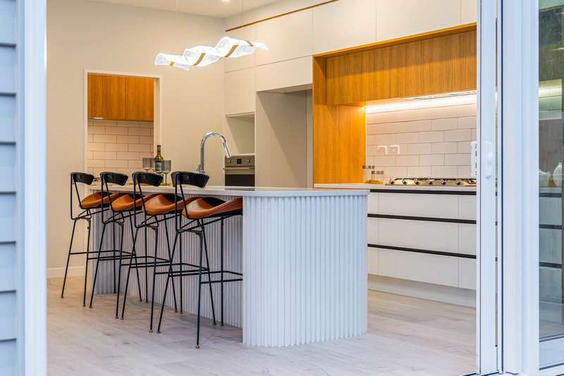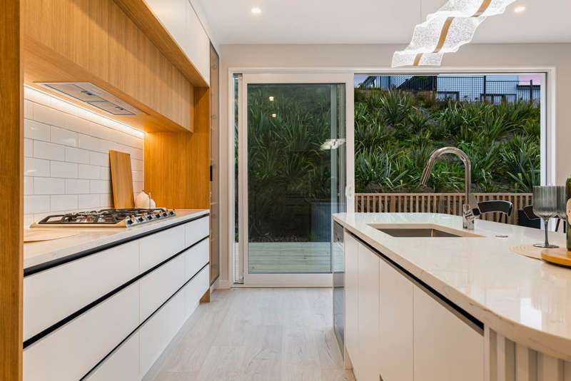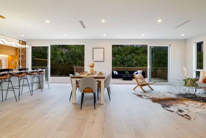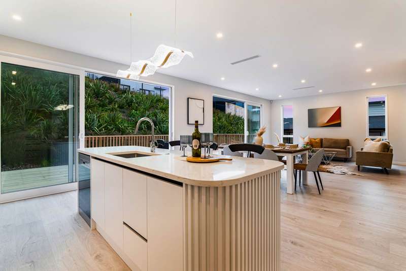 Step into this amazing brand-new home where modern design meets everyday comfort. Set on a 525sqm (approx.) section and offering a generous 324sqm (approx.) of floor area, this thoughtfully designed residence is ideal for families seeking space, style, and versatility, complete with a 10-Year Master Build Guarantee for peace of mind. Downstairs, a spacious two-bedroom granny potential with its own entrance provides the perfect solution for extended family or guests. It features a living area and a sleek, modern bathroom. A separate master suite with ensuite on this level adds extra flexibility, ideal as a guest suite or a quiet work-from-home retreat. A guest toilet completes this floor for added convenience. Upstairs is designed for relaxed family living and effortless entertaining. The sunlit open-plan kitchen, dining, and lounge area forms the hub of the home. You’ll love the main kitchen’s premium appliances, quality finishes, and abundant storage, complemented by a handy second kitchen for extra catering space when hosting friends and family. Open the sliding doors to the spacious, sun-soaked deck — the perfect spot for morning coffees, summer BBQs, or simply unwinding in the fresh air. A separate light-filled lounge offers a cosy retreat for movie nights or a quiet escape. The main master suite on this level features a generous walk-in wardrobe and a stylish ensuite. Two more bedrooms provide plenty of room for the rest of the family to spread out in comfort and privacy. Perfectly positioned in sought-after Millwater, this location places you close to excellent schools, local parks, easy motorway access, Silverdale Shopping Centre, and the beautiful beaches of Orewa — everything you need is right at your fingertips. Don’t miss your chance to secure this quality home. Call today to arrange your private viewing or visit us at our open home!