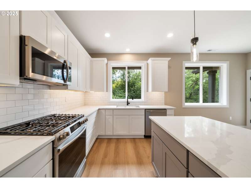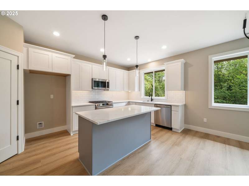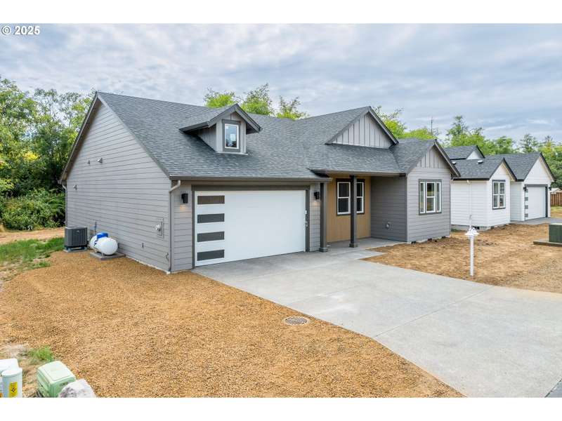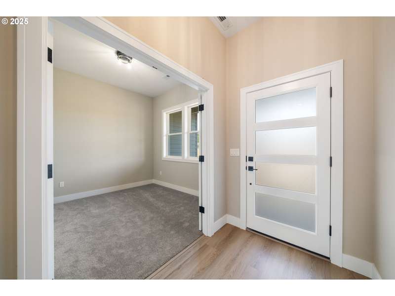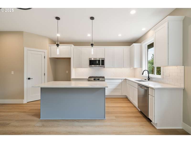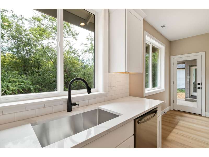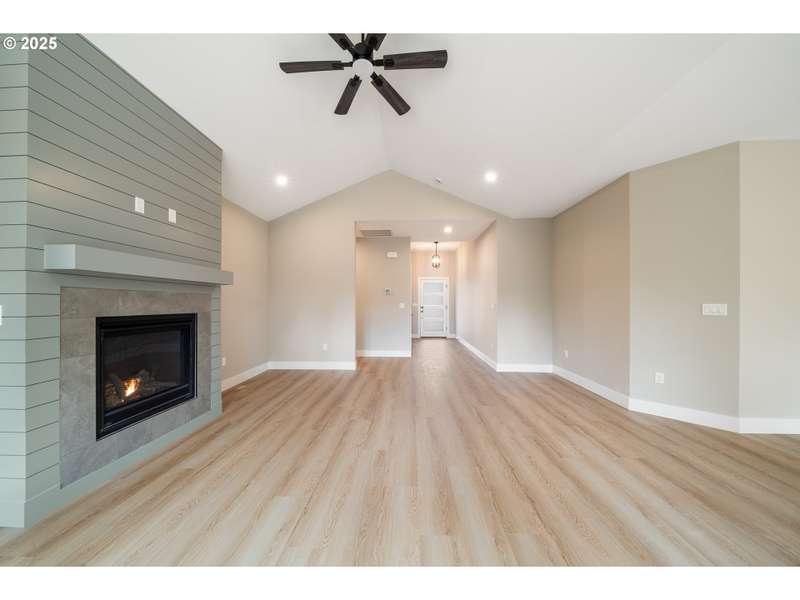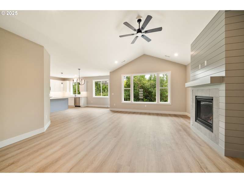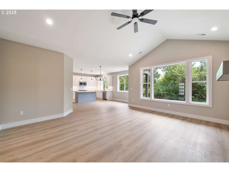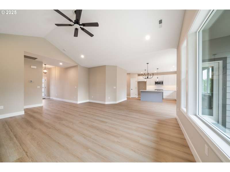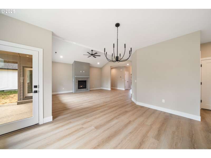 Open and spacious floorplan with 10' ceilings and vaulted ceilings throughout. The vaulted Great-room with fireplace opens to the dining room with door to the covered patio. The kitchen features a stylish island, large pantry, and stainless steel appliances. The vaulted Primary Suite has a door to the covered patio, double sink vanity, walk-in closet. The laundry room has a sink. This beautiful home is situated on a nice sized lot that backs to Greenspace/Wetlands. This home is 100% complete.
