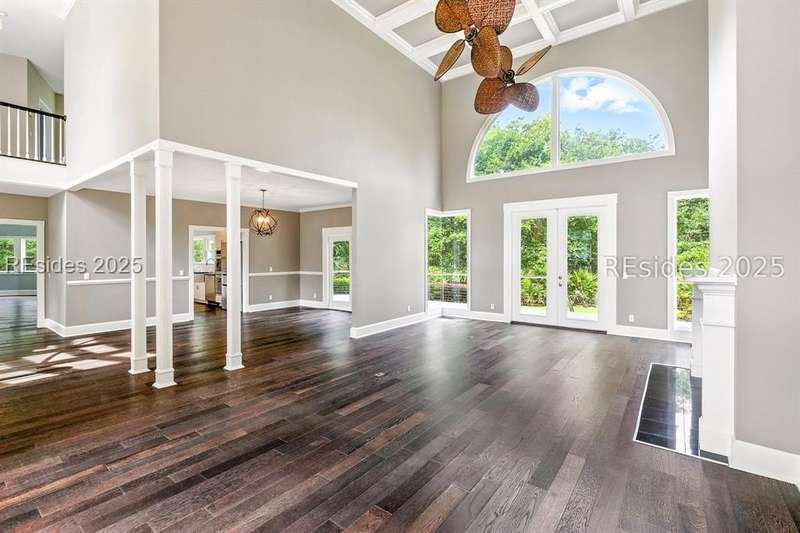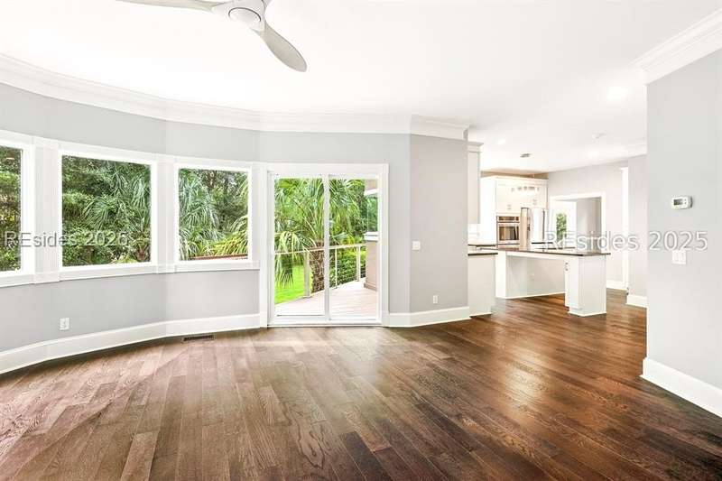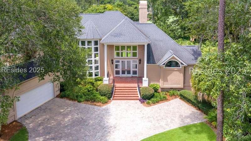 Welcome to 11 Yorkshire Drive, a stunning home on Wexford's 11th green. The dramatic two-story entry showcases a wall of windows and a striking floating staircase, setting the tone for the bright, open interiors. The living room, filled with natural light from both sides, centers around a cozy fireplace. Just off the kitchen, a large circular room offers flexible use as a secondary dining space or comfortable family room. The primary suite is conveniently located on the main level, featuring a fireplace, private access to the back deck, a large bath with a sunken tub, and generous closet space. Upstairs, two additional ensuites flank a sitting area. One bedroom includes a private covered balcony, the perfect spot to relax and take in the surroundings.The backyard is exceptionally private, with ample room to add a pool and create your own Lowcountry retreat.As a Wexford resident, youll enjoy world-class amenities including a private marina, championship golf, tennis and pickleball courts, croquet, clubhouse dining, a resort-style pool complex, and a fantastic year-round social program. The Clubhouse and Harbour Center are currently undergoing exciting improvements - an expanded Clubhouse and a brand-new Harbour Center are scheduled for completion in April 2026, offering an incredible addition to Wexford's unmatched amenities. 11 Yorkshire Drive offers more than a home, it's an opportunity to embrace the elevated lifestyle that makes Wexford one of Hilton Head's most distinguished communities.