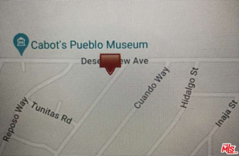 This larger than average corner lot looks out into to the foothills of the San Bernardino mountains and is located at the top of Miracle Hill area of Desert Hot Springs "Spa Zone". The immediate area is made up of residential, local spa tourism and located across the street from Cabot's Museum.
