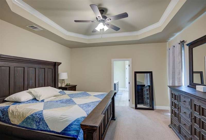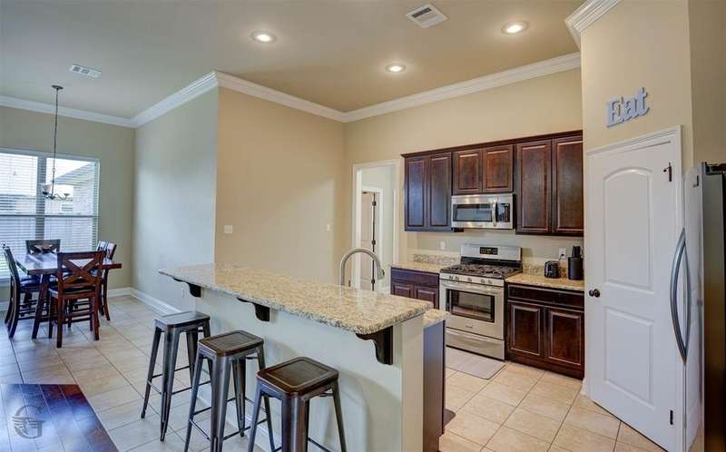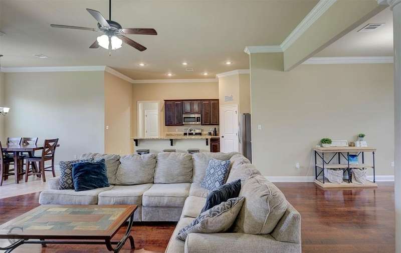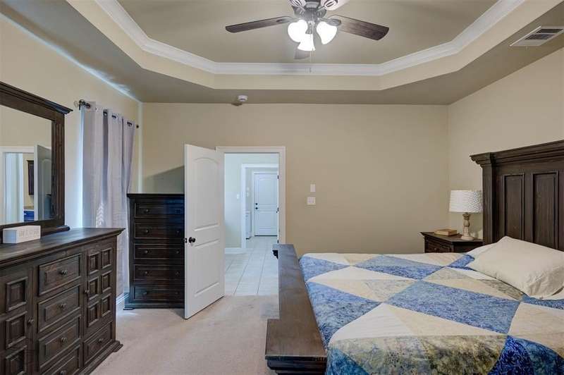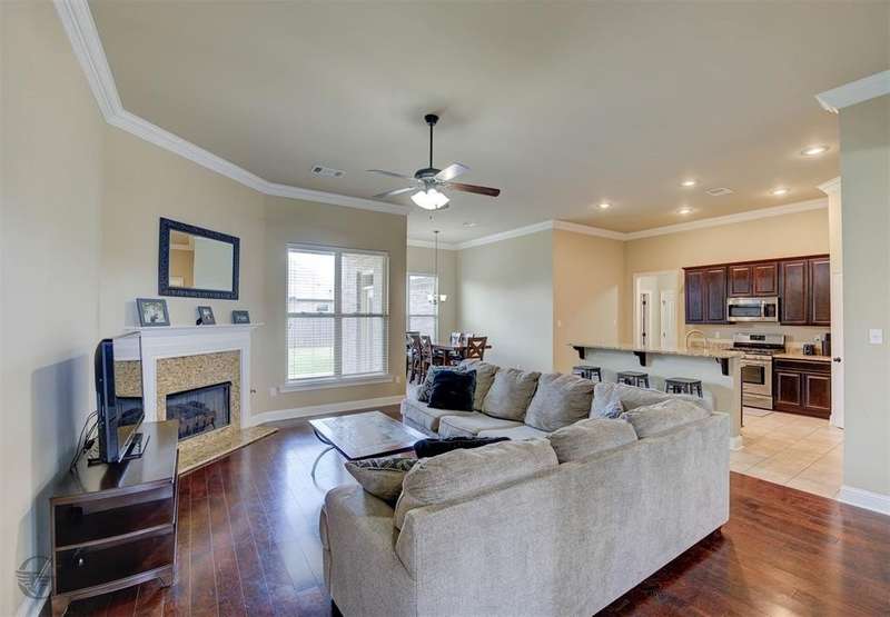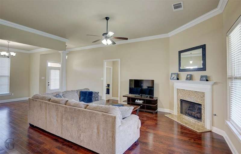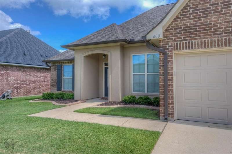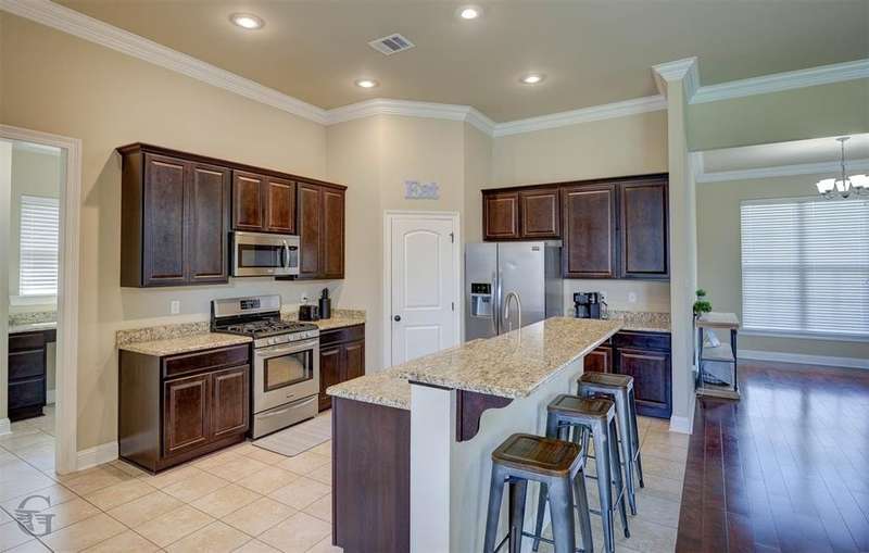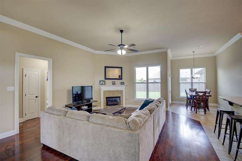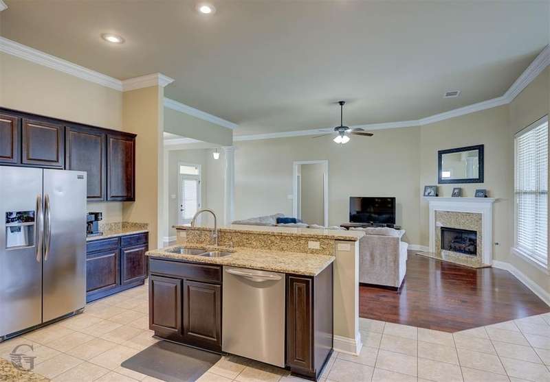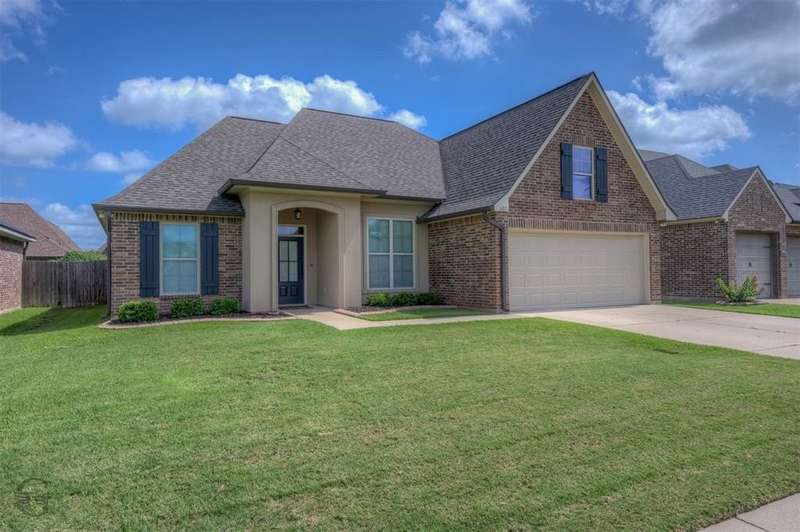 Welcome to this beautiful home in the sought-after Cypress Bend subdivision, where charm and comfort come together effortlessly! With eye-catching curb appeal and an open, inviting layout, this home is filled with natural light and offers a seamless flow throughout the living spaces. Engineered hardwood floors add warmth and style in the main areas of the home, cozy carpet cushions the bedroom floors, and tile in the kitchen and bathrooms brings easy maintenance and durability. The living room is centered around a cozy gas fireplace, perfect for relaxing evenings, and opens into an inviting eat-in kitchen featuring granite countertops, abundant cabinet and pantry storage, and a gas range ideal for home chefs. The spacious laundry room includes a built-in desk area, offering a convenient workspace or organization zone. Retreat to the large master bedroom, complete with elegant tray ceiling details and an en-suite bath that includes dual vanities, a luxurious jetted tub, and a separate shower. With plenty of space inside and out, this home is perfect for all of your need and making lasting memories with the ones you love. Don't miss the opportunity to make this Cypress Bend gem your own!