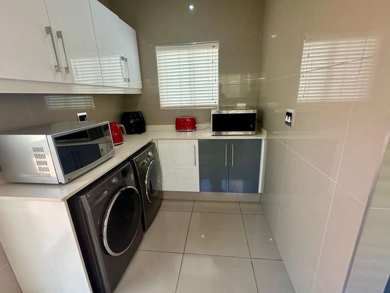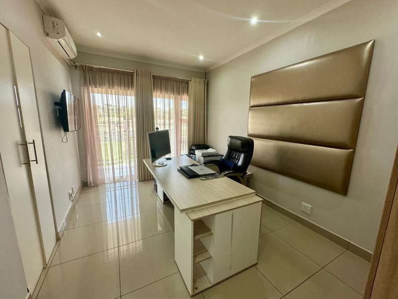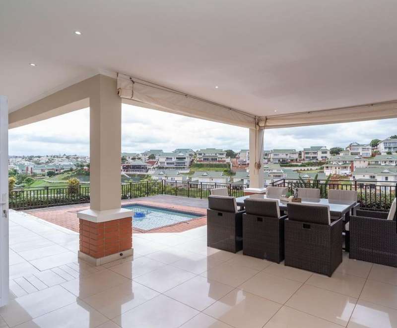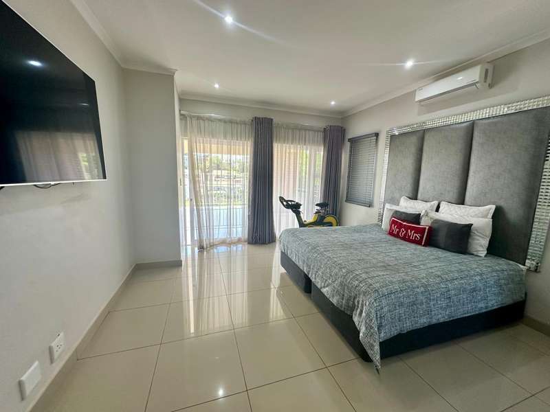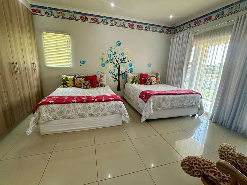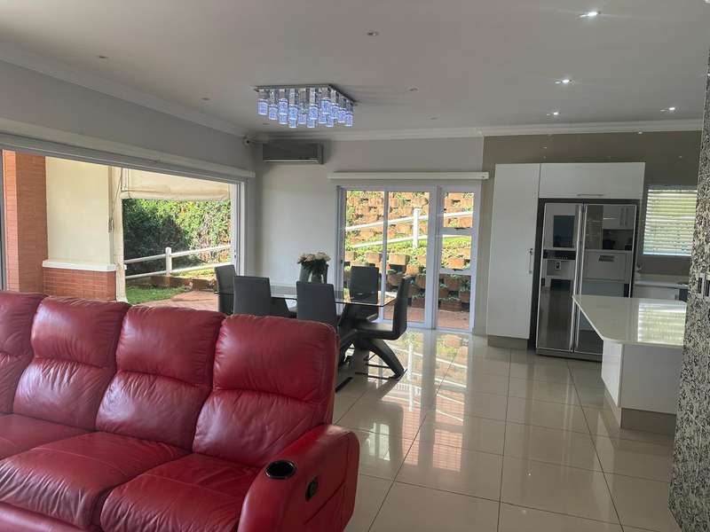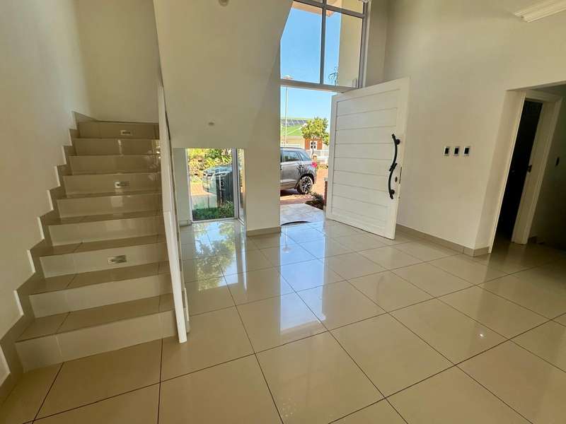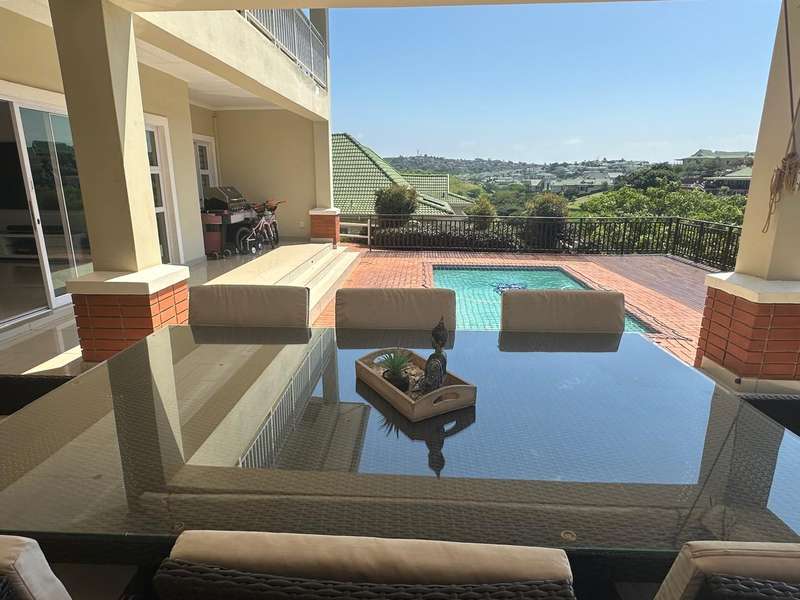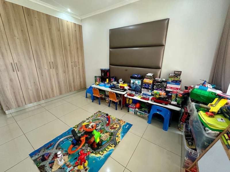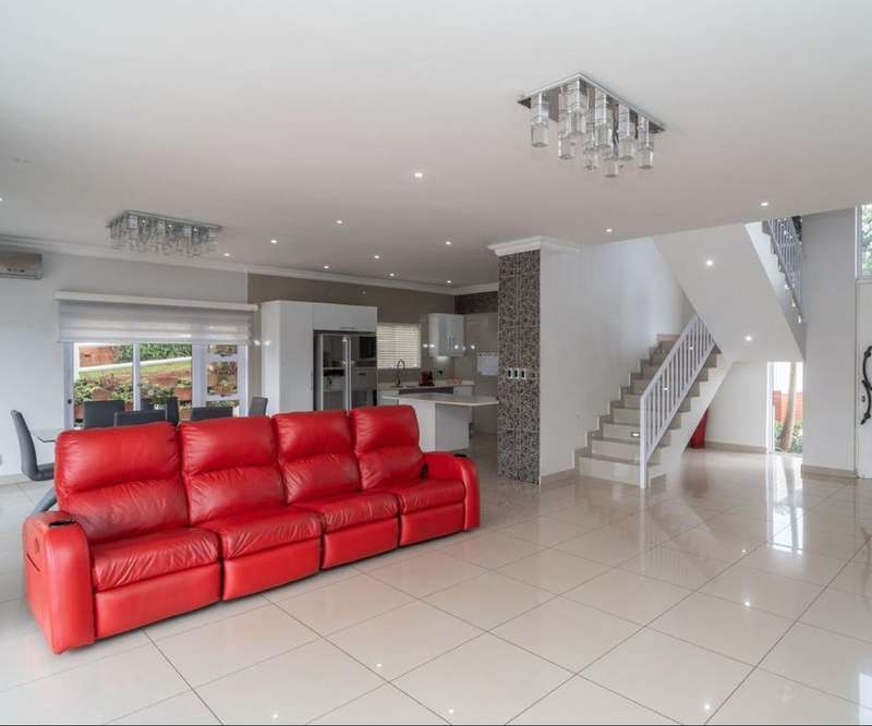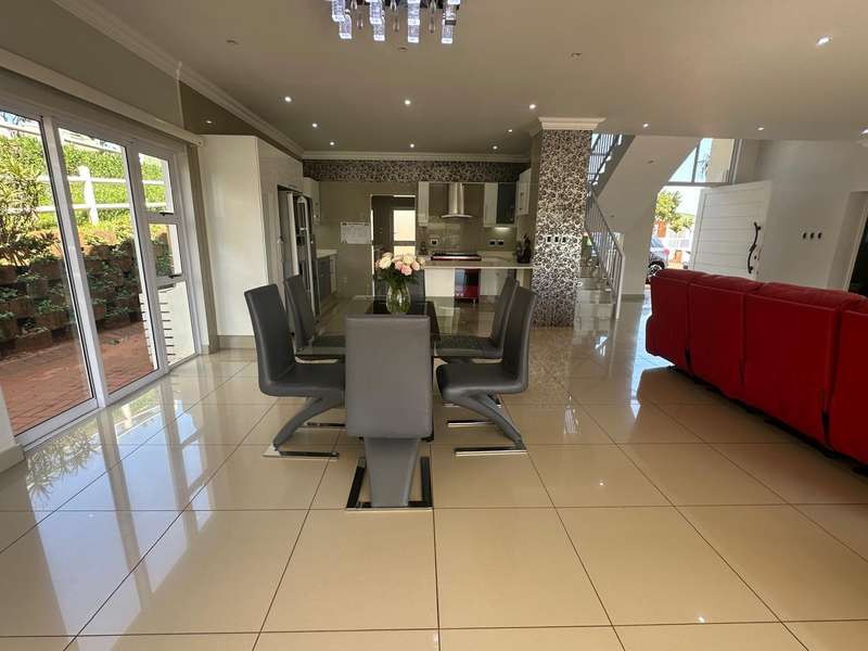 This exquisite free hold dream home waiting for the family to live their dream in this gorgeous mansion in sought after , secure Kindlewood Estate, Mount Edgecombe. The pristine light and bright modern home is North facing with beautiful lush elevated views . Boasting 5 big bedrooms with 5 bathrooms , open plan living leading into lounge dining room patio and onto the entertainment area and decked sparkling pool. This light and bright home feels brand new and there is no work to be done – just simply move in and begin to make the best memories with your family! There is a guest bedroom and bathroom on the lower level of the home. There are 4 beautiful spacious bedrooms and bathrooms upstairs which are all north facing . An exquisite , elegant home to be proud of! Estate Amenities Included: State of the art Biometrics security system, Gym, Lap pool, Club house available for private function hire, Tennis courts, Outdoor Chess, Padel courts – in the process being built, Mini soccer field and pavilion, Dam, Walking and running trails through the wetlands Call now to arrange a viewing!