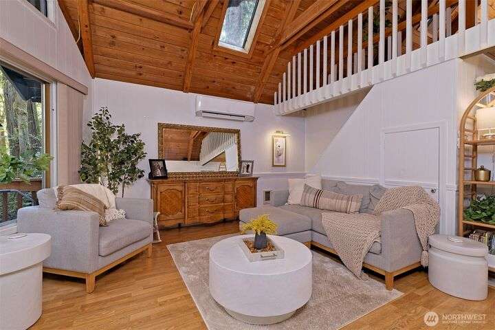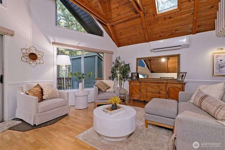 Cozy. Peaceful. Soothing. Whether you’re dreaming of a full-time home or a self-care getaway, this sweet space has all the right vibes. Warm & inviting to say the least, this 2bd/1bth home features a loft that’s truly a versatile retreat. Tongue & groove ceilings, earthy beams, skylights, ceiling fan & ductless heat pump for that cozy or cool, airy feel. Bright, open kitchen space w/dining area. Deck w/slider, built-in seating & storage. A short stroll to the beach, after-all, life is better w/beach access. In the gated Hartstene Pointe community, enjoy a community beach, garden & trails, seasonal pool/hot tub, clubhouse, sport courts, picnic areas & marina w/boat ramp. This home is equal parts charming & chic, just waiting for you.