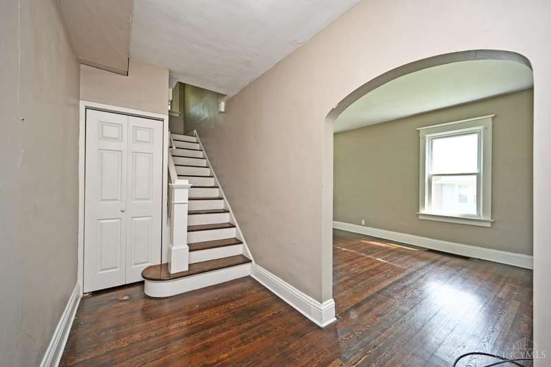 Great opportunity for the right buyer. Some TLC is needed but this home has some stunning features. Sits on double lot with 2 car detached garage at rear. Inside features hardwood floors throughout. First floor has huge living room, large entry and kitchen/dining room. Three bedrooms upstairs with a walk-in closet, walkout to small balcony at rear. Home is being sold As-Is.