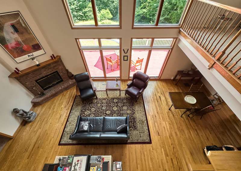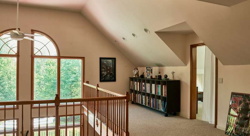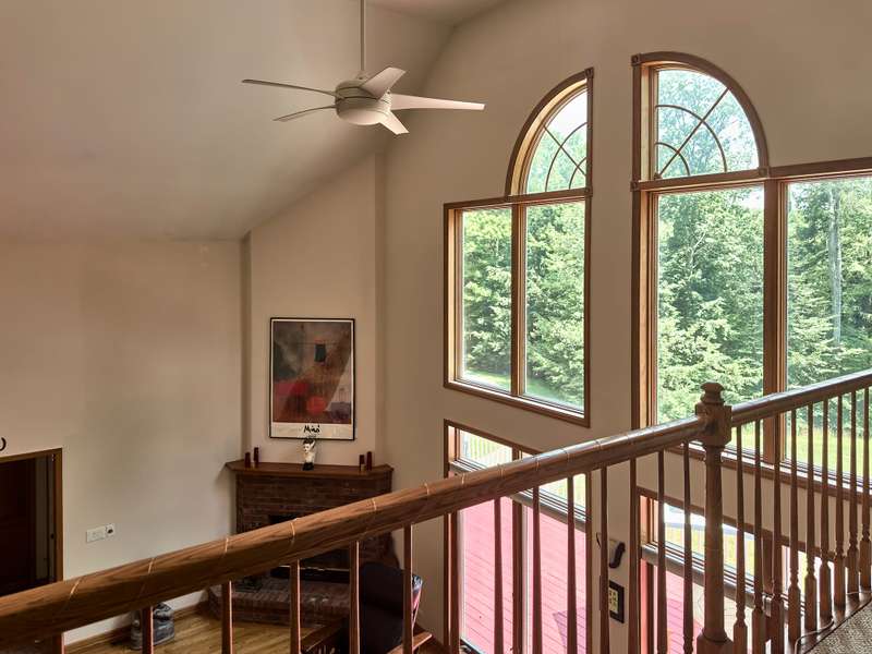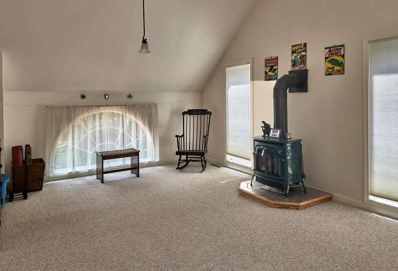 Idyllic Berkshires HideawayTucked away on 5.8 wooded acres, this 3,150 sq. ft 3-bedroom, 4-bath home combines the airy warmth of a lodge with abundant natural light and sweeping seasonal views. The main level is designed with accessibility in mind and features a spacious primary en suite, an open kitchen and dining area, a private den, access to an enclosed three season porch and a laundry room with half bath. While the stunning living room impresses with vaulted ceilings, a wood-burning fireplace, and a dramatic wall of windows.Upstairs, you'll find two inviting bedrooms, a meditation/guest room, and a full bath off the wide-open landing. One bedroom includes a hidden treasure with a recently refinished 450 sq. ft. private room with new hardwood floor and propane heater, which could serve as a library, music room, or home office.Outdoor living shines with a large front deck, ideal for gatherings, and a cozy enclosed porch for evening relaxation. In winter, retreat to the den or the lower-level family room with a new wood-burning stove, half bath, and yard access. A mechanical/storage room with high ceilings adds functionality, all supported by durable steel I-beam construction. Behind the home is access to a below ground, stand-alone storm cellar or storage area that runs along the length of the family room.Additionally, the property includes a newly insulated 30' x 45' Morton building with two rooms, two oversized garage doors, 10' ceilings, a bathroom, septic, and new heating units. This 900 sq. ft. building is an ideal space for a workshop, artist studio, or guesthouse. Outside is a cement pad with retaining wall and space for large machinery or a future enclosure.The winding paved driveway enhances the sense of privacy, while the location keeps you close to Albany, Williamstown, and the Berkshires with skiing, boating and cultural events nearby. Whether for weekends or year-round living, this property offers room to dream and space to create in the 'Only Stephentown in the World.'