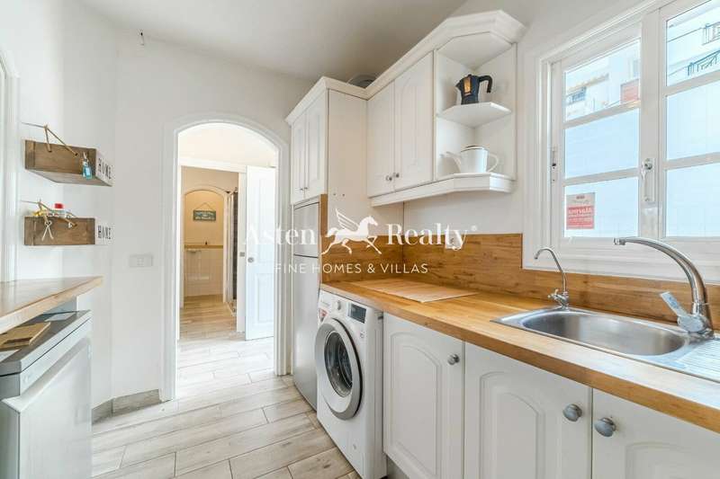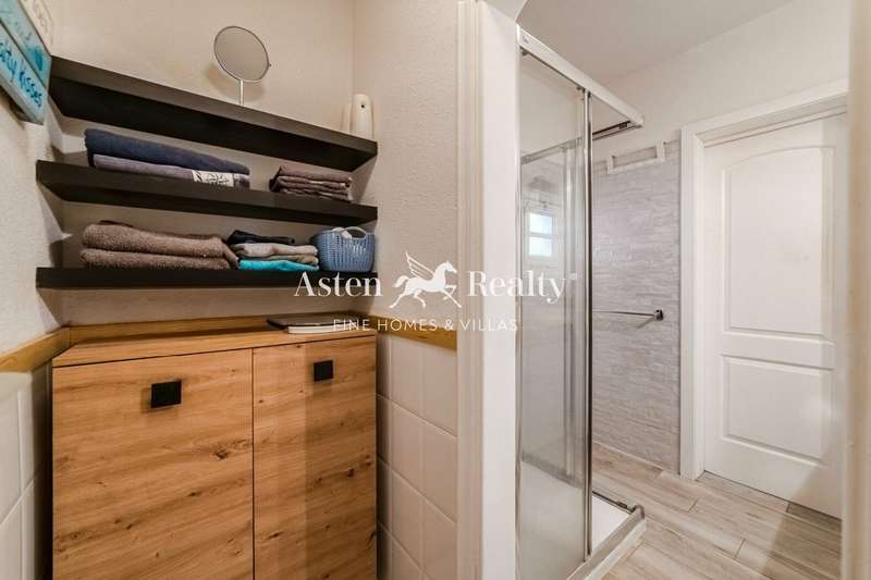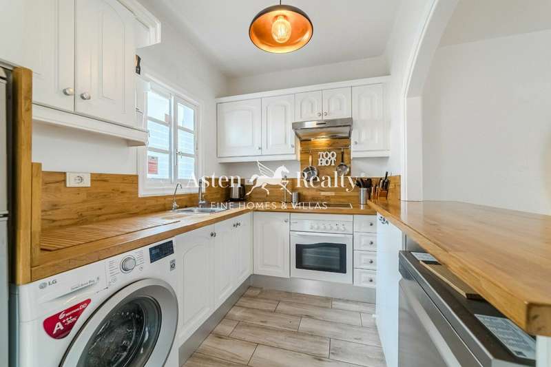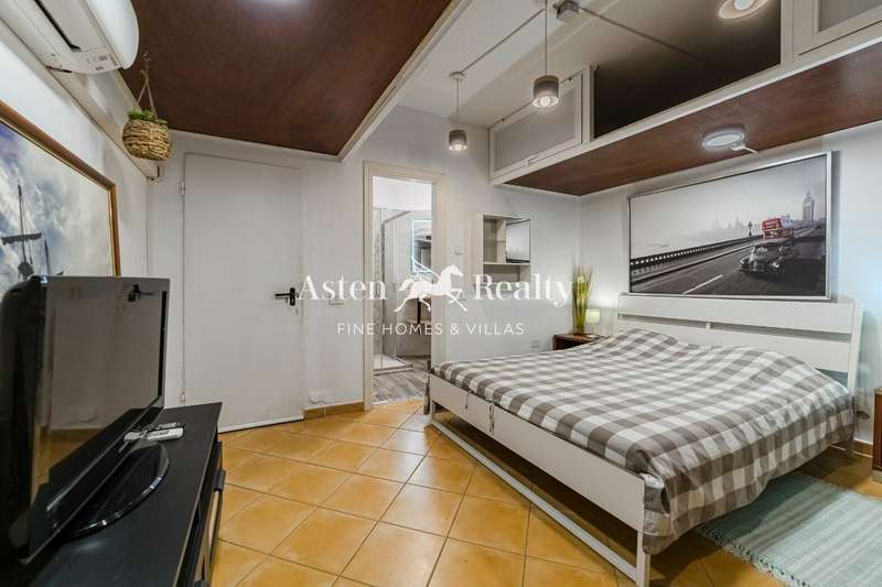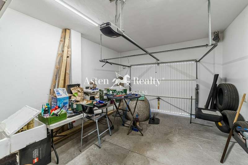 The staircase next to the entrance leads to the private garage of 45 m2. Part of the garage has been converted into a pleasant studio with bathroom and shower for guests; another part remains intended for vehicles, which turns this property into two homes with independent access.