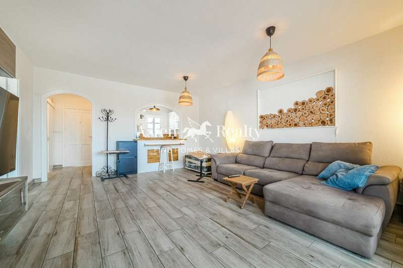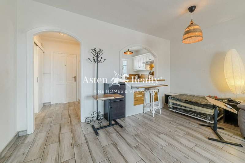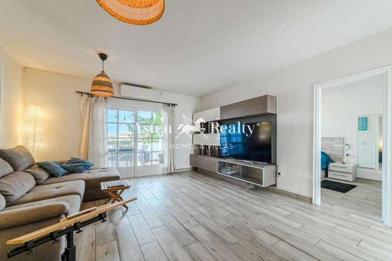 The apartment has air conditioning in the living room and bedroom and is sold fully furnished.