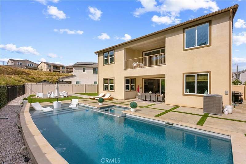 Modern Luxury with over 300K in Designer Upgrades & Resort-Style Backyard! Welcome to this brand-new, meticulously upgraded 4-bedroom home—with potential for a 5th bedroom—where the sellers spared no expense in the design studio. Every inch of this home exudes style and quality, from the stunning custom tile work on the stairs, bathrooms, and kitchen, to the beautifully curated lighting throughout. The heart of the home is the chef’s dream kitchen, featuring top-of-the-line Monogram appliances, an expansive island, and a spacious walk-in pantry, 6 burner stove with griddle and warming light, smart oven, and built-in refrigerator/freezer. The open-concept design flows effortlessly into the great room and out through stacking sliding doors to the covered California room, creating a seamless blend of indoor and outdoor living. Upstairs, a large loft provides flexible space for a media room, office, or additional lounge area. Each bedroom is generously sized, and the layout offers versatility for a growing family or multi-generational living. Step into the oversized backyard oasis, complete with a sparkling pool and jacuzzi, baja shelf, waterfalls, sleek fire pit lounge area, and plumbing ready for an outdoor shower—perfect for relaxing or entertaining in style. This home is not only stunning but smart and efficient, featuring paid solar with 2 battery banks, dual EV chargers, and energy-conscious systems throughout. Why wait for new construction when this move-in-ready masterpiece is available now? Come experience luxury, comfort, and cutting-edge efficiency in one incredible home. Schedule your private showing today!