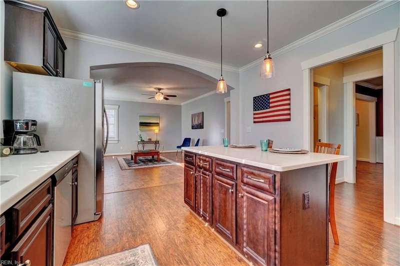 Fantastic Traditional 4 Bed/3 Bath Home on large corner lot near ODU. Enter foyer with custom molding/seating and 9 ft ceilings. Convenient first floor multi-purpose adjacent full room for guest bedroom and/or home office. Open concept chef's kitchen with stainless steel appliances, granite counters, island for seating, large pantry and custom bar area. Generous sized Family Room with gas fireplace and updated flooring. A dream Primary Bedroom with sitting area and to die for walk-in closet with spa-like en-suite. Two additional bedrooms and full bathroom upstairs along with convenient laundry room. Backyard entertainer's dream with extended patio for grilling and large backyard for recreational opps. Huge double garage with HVAC recently added and great workshop/mancave. Current owner made over $18,000.00 in additional improvements. Close to up and coming North Colley, Elizabeth River Lab, Railyard District, Riverview/Virginia Zoo and downtown. Nearby bases and interstate systems.
