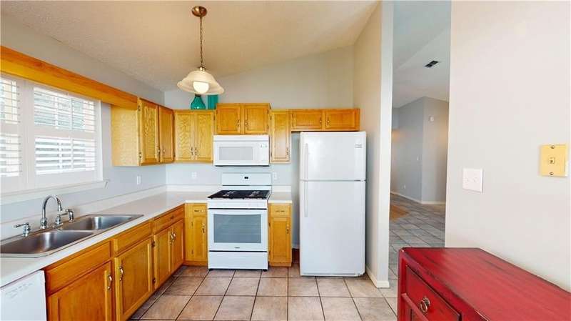 Welcome to this well-maintained 3-bedroom, 2-bath single-family home built in 1993, ideally located just minutes from local schools. This inviting property features a classic front porch perfect for morning coffee or relaxing in the afternoon, Step outside to enjoy a private patio, great for BBQs or relaxing evenings and a large fenced backyard ideal for entertaining, play, or pets. Inside you will find a comfortable layout with plenty of natural light, an open concept dining room and great room perfect for gatherings and generous bedrooms with the primary featuring a vaulted ceiling. The kitchen is quite functional with plenty of pantry and cabinet storage space. A one car garage with an automatic garage door opener makes entry easy. This house is made for enjoyable, every day living!