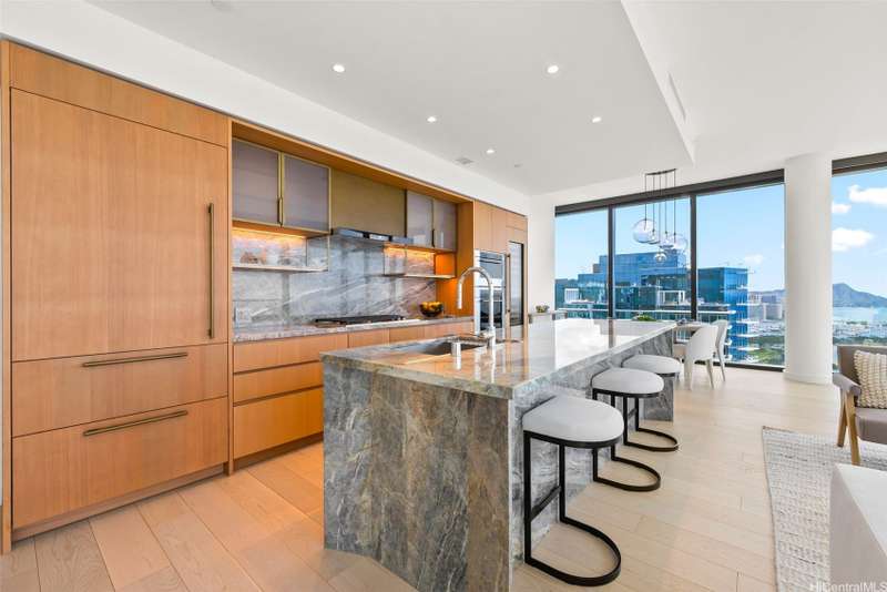 Penthouse 3900/ 3 beds, a den/office room, 3 baths with 10-foot ceiling at Victoria Place is the crown jewel of Honolulu's luxury skyline where architectural brilliance meets island tranquility. This sky-high sanctuary offers sweeping views from Diamond Head to the Pacific ocean, framed by floor-to-ceiling glass and elevated by exquisite finishes. Upgrades are motorized blinds in every rooms, California closet systems in all closets, a EV charge outlet, a storage room. Residents enjoy exclusive access to resort-style amenities, including a stunning infinity-edge pool, lap pool, private pool house, BBQ cabanas, a state-of-the-art fitness center, wine room, movie theater, Spa w/ hot and cold plunge pool, 24-hour concierge service, valet service, guest suites and more. Every detail is curated for effortless living. The prime location in Ward Village places homeowners within short distance of Ala Moana Beach Park, whole Food market, fine dining, shopping and more. This isn't just a home. It's a lifestyle reserved for the truly discerning.