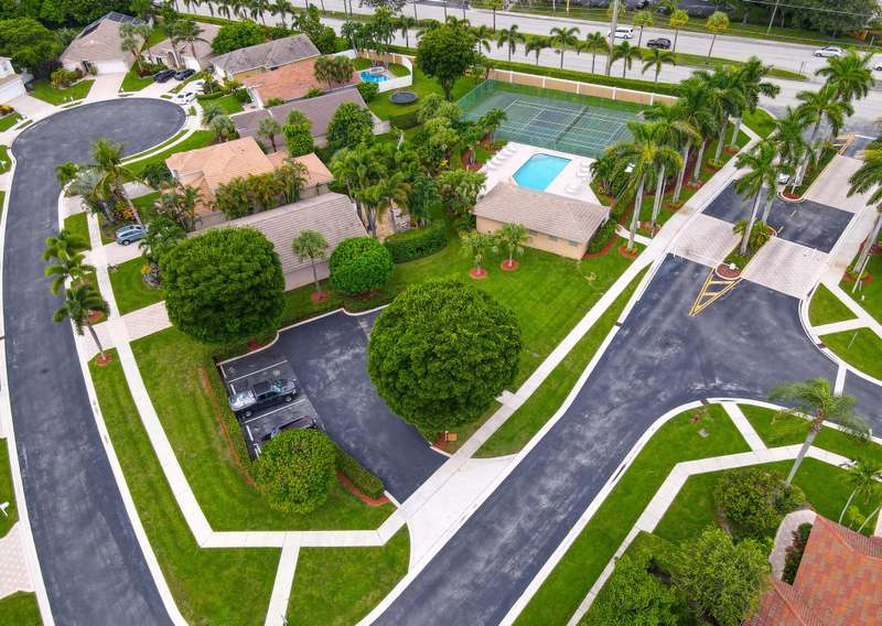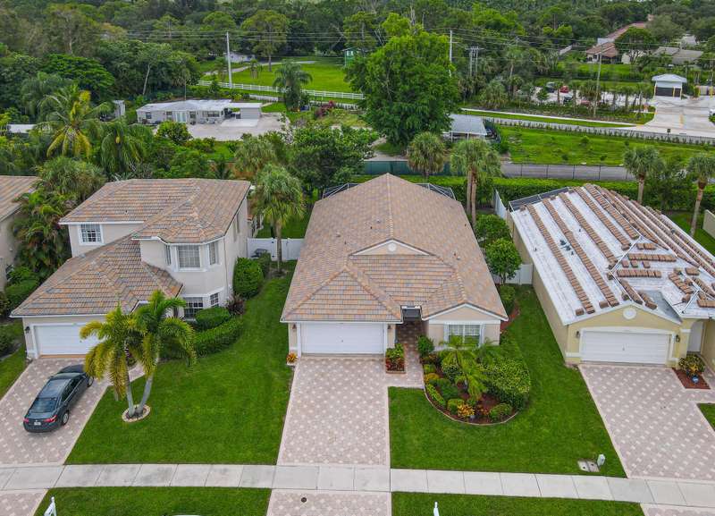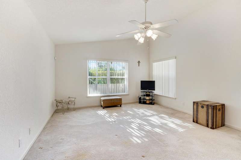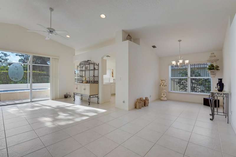 Pride of ownership, bright open space, and vaulted ceilings adorn in ever aspect of this meticulously maintained home, including the impeccable landscaping and custom paver driveway. Primary Bedroom features a large bathroom with double sinks, separate tub and shower, and large walk-in-closet. The private fenced yard can be extended approximately 25' to expand the yard area and features a covered and fully screened patio with oversized raised SPA and fully fenced yard. 3rd Bedroom/Den does not have a closet. AC unit replaced in 2020 and includes a UV Light, New Water Heater November 2024. Full hurricane protection with accordion shutters.Grande Palms is a small intimate gated community of 61 single family homes and offers residents a private pool and tennis courts.