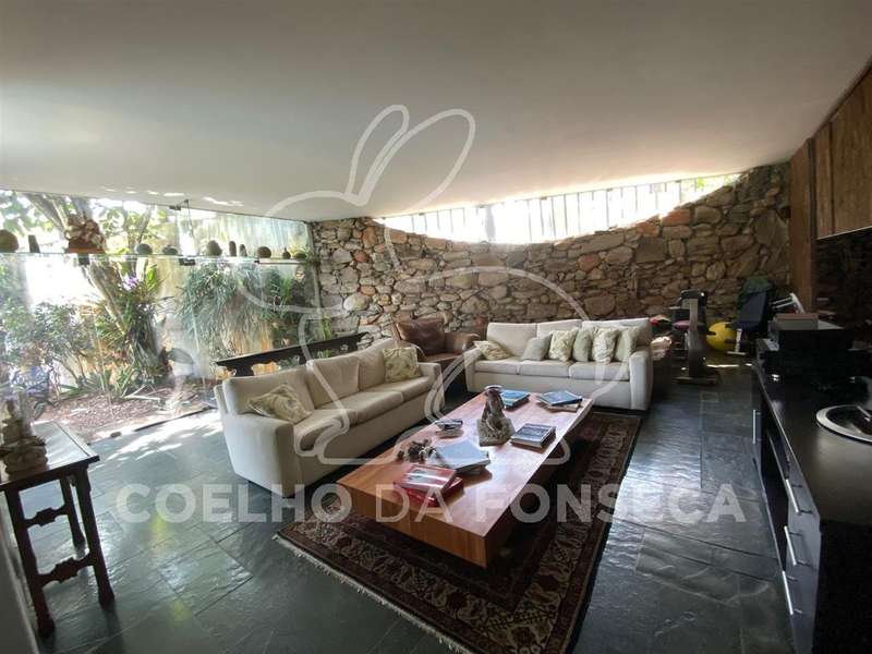 Suntuosa casa em rua tranquila e arborizada no Alto de Pinheiros. Com sala de jantar, linving com 2 ambientes e lareira, escritório, ateliê, terraço, piscina, sauna e vestiário. No piso superior, sala íntima com 2 ambientes e lareira, 5 dormitórios, sendo 3 suites, mais 3 dormitórios, banheiro e copa de empregados. A suite master possui terraço, 2 closets e banheio com 2 pias, banheira e box de chuveiro. A construção é da década de 70 em cimento armado.