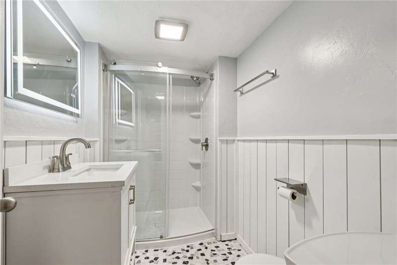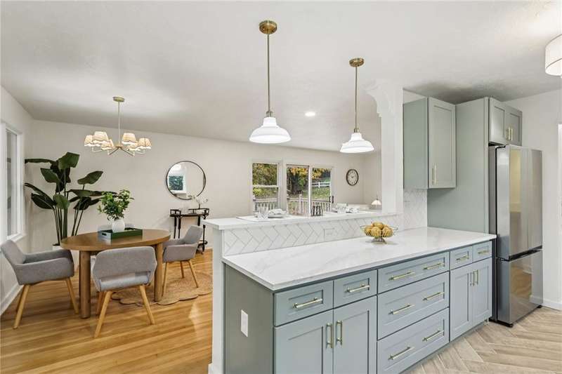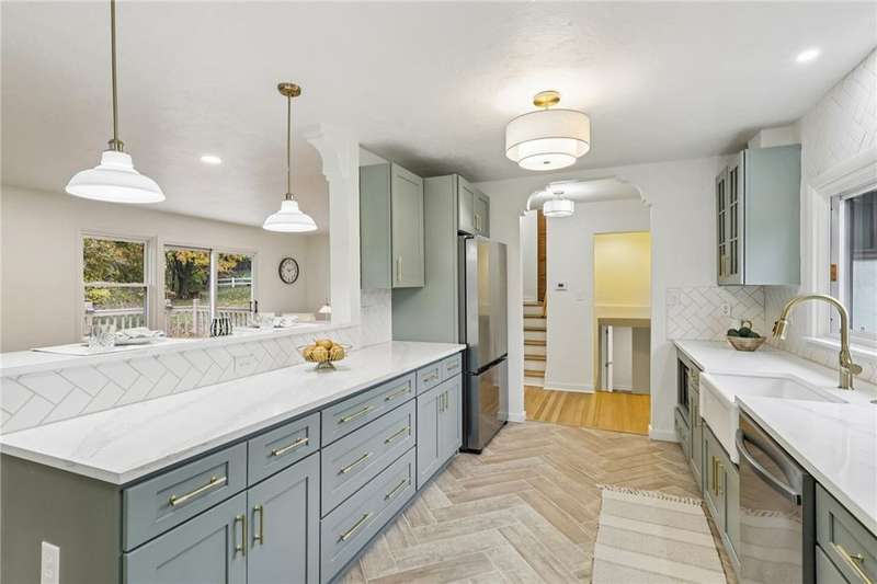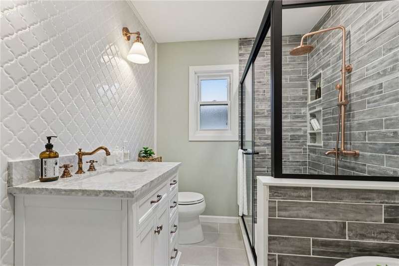 Step inside this beautifully remodeled home through a custom front door that sets the tone for quality and style. The main level and upstairs bedrooms feature gleaming hardwood floors, and the new kitchen impresses with modern finishes and stylish cabinetry. The living room centers around a stunning stone fireplace and flows into the dining room, making entertaining easy and fun. While the main bathroom shines with its modern design and copper-colored accents, adding a touch of luxury to everyday living. The lower level provides an additional room, great for a game room or den along with the third bedroom and second full bath! With the deck and patio overlooking a peaceful yard, you'll enjoy the outdoor living as much as the inside of the home. Every detail has been carefully considered?from the layout to the finishes?this home strikes the perfect balance between elegance and livability.