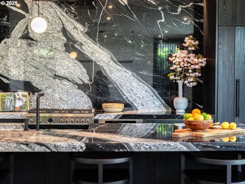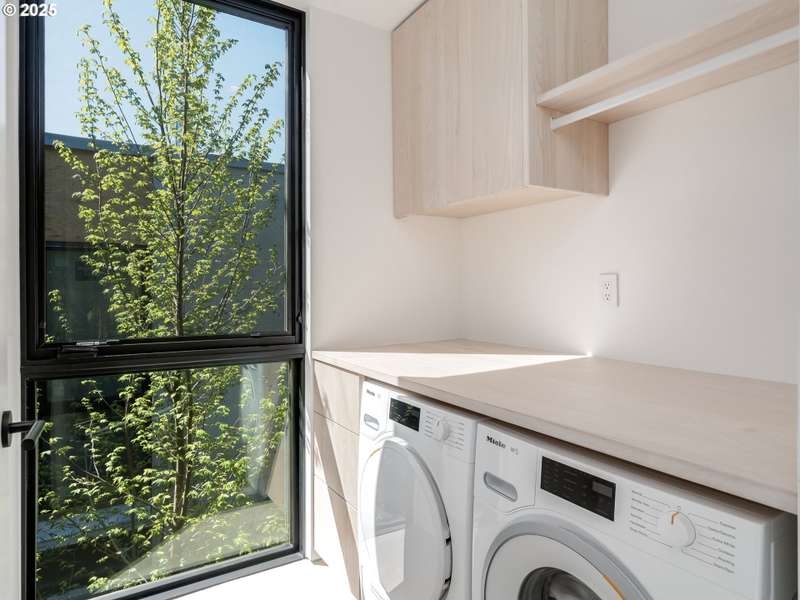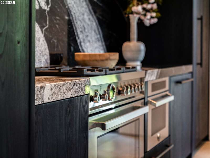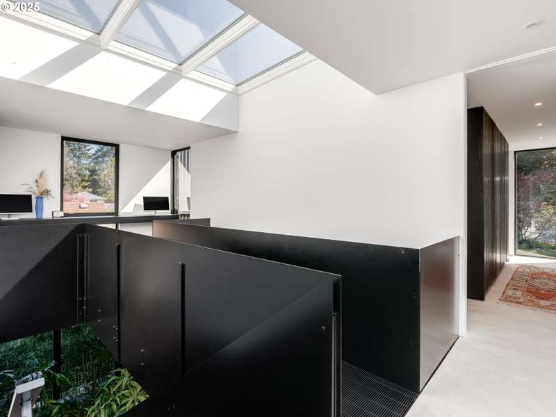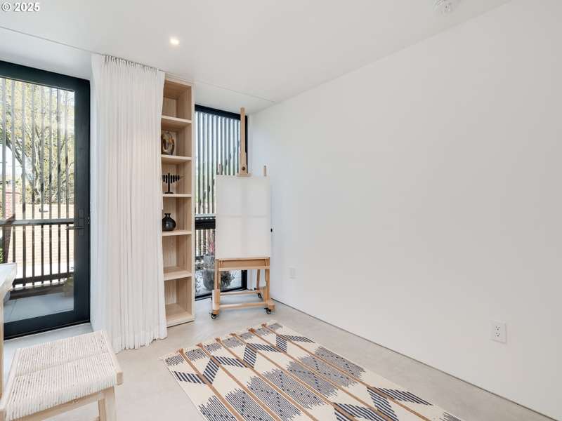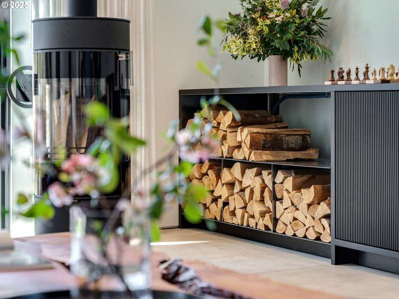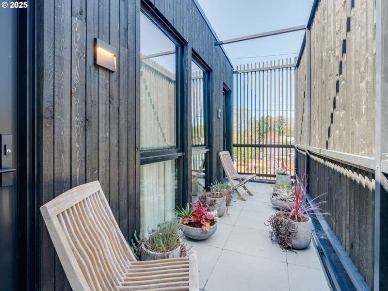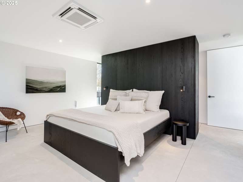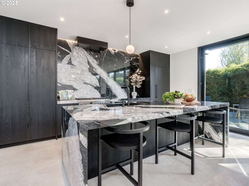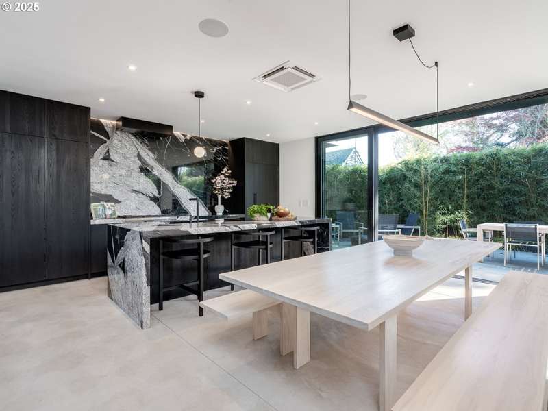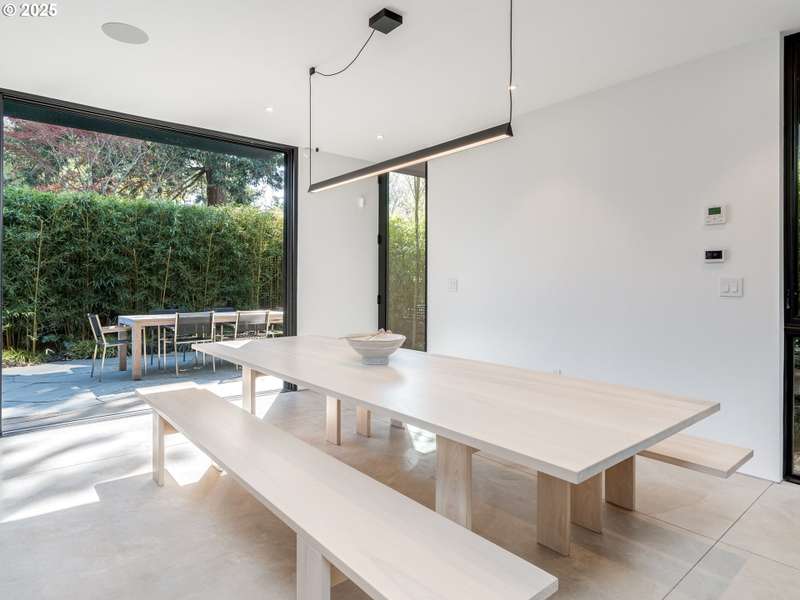 The Atrium House is a rare architectural gem in the heart of the Richmond neighborhood, just blocks off trendy Division St. This infill project by Capsule Development brings custom-quality design to the Eastside—where creativity, craftsmanship, and nature meet. This modern masterpiece features soaring ceilings, heated concrete floors, & a stunning three-story atrium. Anchoring the living space is a steel staircase, fabricated locally in Portland, spanning all 3 levels. The lower level boasts a cedar dry sauna paired with a custom steel cold plunge & shower, creating a private wellness retreat. Lush, curated greenery surrounds the space, enhancing the sense of calm & relaxation. On the main floor, the chef’s kitchen is equipped with high-end, built-in appliances from Bertazzoni and Fisher & Paykel. Throughout the home, the custom ash cabinetry was charred using traditional Japanese Shou Sugi Ban technique, offering enduring beauty and a refined timeless aesthetic. Luxury materials like Maori Brazilian granite slabs elevate the kitchen & baths. Just off the dining room, sliding doors open to the back patio for seamless entertaining. In the living room, a RAIS wood stove serves as both a cozy heat source and a striking sculptural centerpiece. One of the most distinctive features of the house is that it comes fully furnished, with pieces specifically crafted to reflect and elevate the home's modern, natural aesthetic. Upstairs, you’ll find all 3 bedrooms, a dedicated laundry area, and a guest bath. Each bedroom features its own balcony—perfect for enjoying fresh morning air or a relaxing evening breeze. Floor-to-ceiling windows flood the space with natural light, enhancing the open, airy feel throughout. Out front, rolling shutters add a dramatic architectural touch while offering both privacy and adjustable light control. A truly one-of-a-kind property that celebrates thoughtful design & modern living in one of Portland’s most sought-after neighborhoods. [Home Energy Score = 8. HES Report at https://rpt.greenbuildingregistry.com/hes/OR10191104]