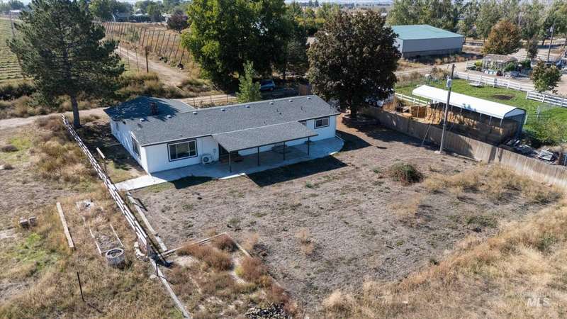 Property has beautiful views, space, privacy, and usable land. Country living at its absolute best! This property has it's own pivot for irrigation! Canyon County will also allow a second home on this property (it can not be split but another home can be added). The property has the perfect site for an additional home with stunning views! Priced to sell: well below recently appraised value. This home will move quickly! The spacious, single level home has been renovated recently. It now has band new interior paint and carpet throughout the home and a recent upgrade to windows. Wood burning fireplace with floor-to-ceiling stone mantel in the living room is beautiful and functional. This is the last house on a private lane, with no back neighbors, you'll enjoy uninterrupted views from the covered back patio, and mature trees lining the entire front offer shade & privacy. Set up for both horses & cattle, this modern homestead is built to work hard and play harder. There are several acres of fenced, irrigated pasture and covered corrals. Multiple outbuildings include a 35x35 barn w/ 220v, a 28x40 machine shop w/ 110v, 14x15 shed, several large lean-tos and livestock shelters. Current appraisal of $832,000 and inspections completed and will be shared with interested parties.