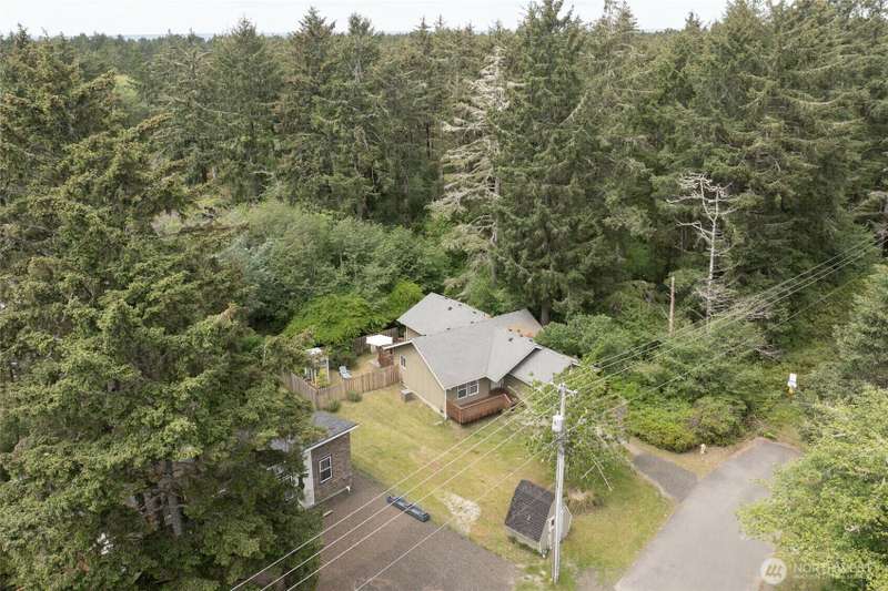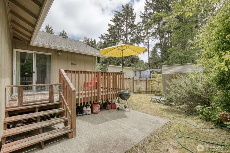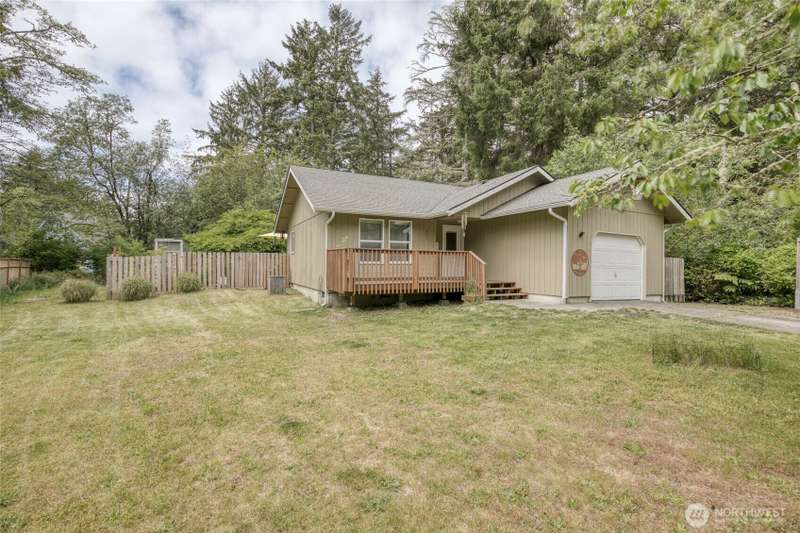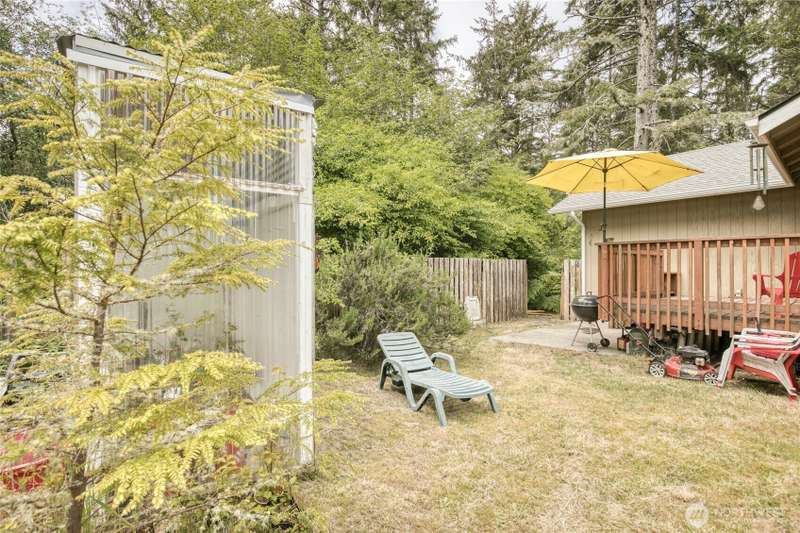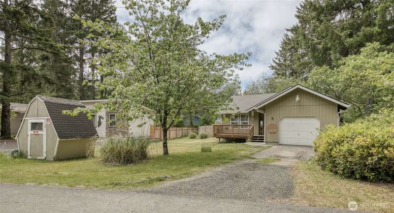 Location!!! Backing up to the protected Weatherwax Property on a quiet, dead-end street, this home offers privacy & seclusion while still being close to public beach access, downtown Ocean Shores & just around the corner from the elementary school. Updates in 2021 include NEW ROOF, front & back decks, tiled shower, carpeting in 2 of 3 bedrooms, & LVP flooring. Featuring 1,092 SF of light & bright living space w/ a partially open-concept living/kitchen/dining areas offering a thoughtful separation of spaces without losing functionality. Primary Suite w/ walk-in closet, step-in tiled shower + 2 guest bedrooms & full guest bathroom. Enjoy the PNW outdoors in fully fenced backyard w/ 119 SF deck & greenhouse + attached garage & storage shed.