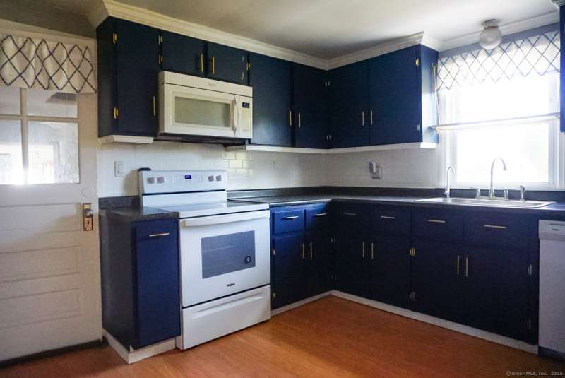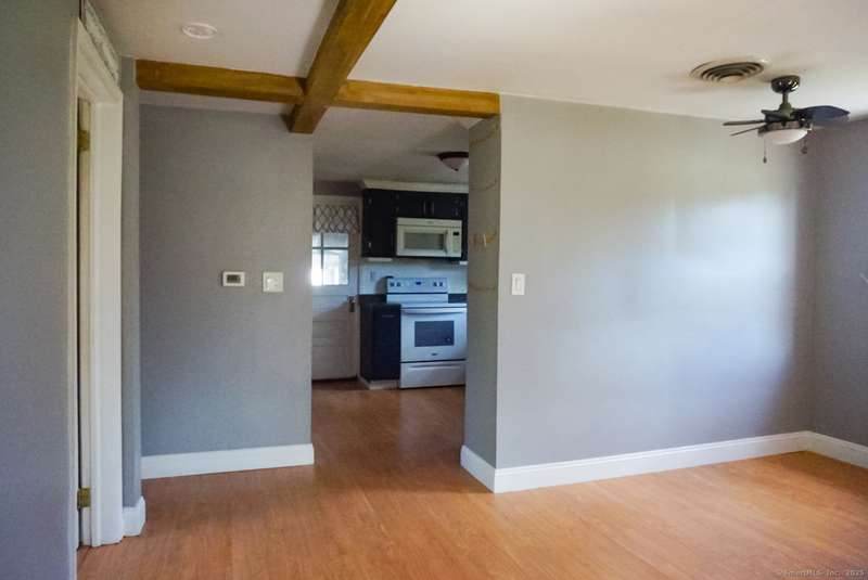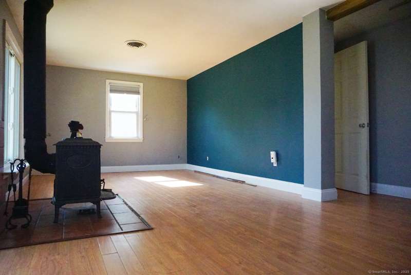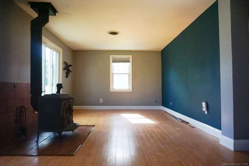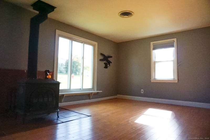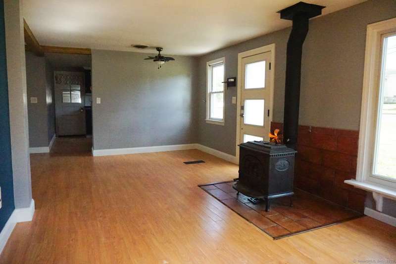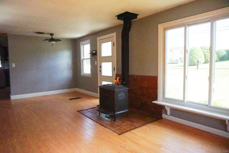 One level living, stylish, move in ready- the perfect place to call home! Could be a great starter home or great if you're just looking to simplify. You're welcomed home to a beautiful brand new, custom mid-century style door that lets in lots of light. A open living room/dining room area, complete with a wood stove for the chilly winters. The cool kitchen has great space for cooking. The newly finished laundry area is right off the kitchen, no more lugging your laundry around! The second bedroom has the entrance to the deck, could also make a great office space. One of the additional highlights is a giant walk in closet next to the bathroom, a dream for storage. The deck has been newly painted and is a great size for entertaining. The backyard is level, includes a large shed, excellent for backyard hangs and playtime. This sunny location is walking distance to the high school, close to highways and not far from the golf course and shopping! All you have to do is unpack and you're good