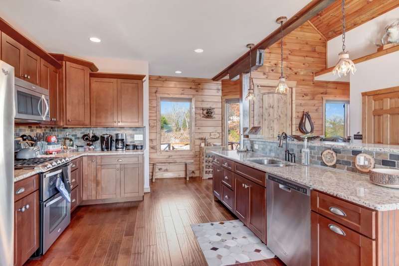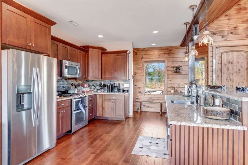 Stunning Lakeview Retreat - Fully Remodeled with Luxury Finishes!Experience lakefront living at its finest in this beautifully remodeled 4-bedroom, 3-bathroom home, offering breathtaking lake views from every room but one! Nestled in a serene setting, this home boasts exquisite cedar woodworking inside and out, elegant hardwood floors, and unique cowhide cabinets, creating a perfect blend of rustic charm and modern luxury.The open-concept kitchen features a gas cooktop, stainless steel appliances, and custom chandeliers, while the spacious living areas-two on the main level and a third downstairs-offer ample space for relaxation and entertaining. Custom mirrors add a touch of sophistication throughout.Step outside to your private backyard oasis, complete with a wraparound cedar deck, a built-in gas grill, and a six-person hot tub-perfect for soaking in the views after a long day. The two-car garage provides convenience, and the home is short-term rental-friendly, making it an excellent investment opportunity.Don't miss this rare chance to own a fully updated lakeview retreat with unparalleled charm and modern amenities. Schedule your private tour today!