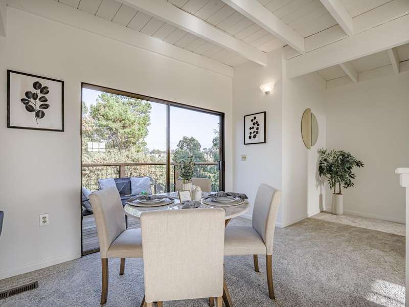Fantastic home with partial ocean view at an exceptional price! Ready to move in with a new roof, new deck off dining area, new flooring and interior paint as well as dressed out front yard landscaping! 4 bedrooms and 3 baths with great separation, ocean peeks from the front bedroom and deck, beautiful canyon views off the back. A short jaunt to the beach as well as Seascape Golf Course and Deer Park Center, home has a 2-car attached garage, primary bedroom suite on the main level, cozy open beam ceiling & fireplace in the living room- this is the one! Home is within Rio Del Mar Elementary, Aptos Jr Sr High boundaries. Vacation 365 days a year- this home fits all your needs- whether your main home or vacation/second home it is terrific!