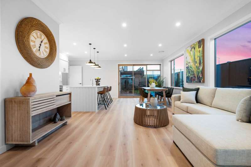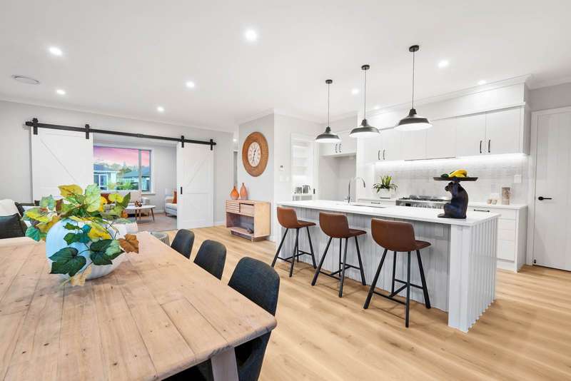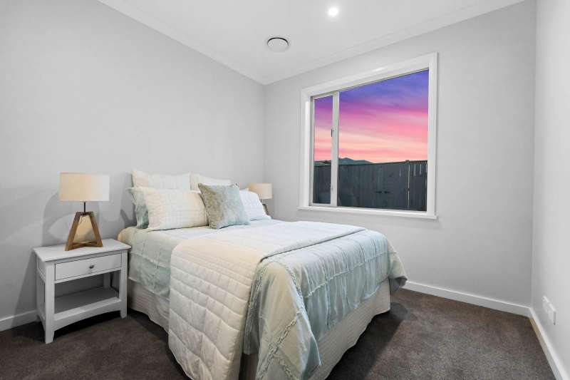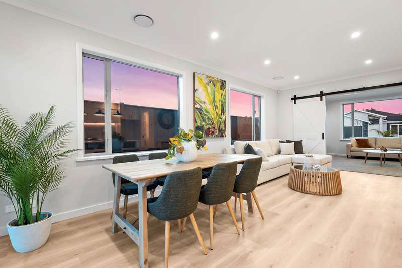 Step into a world of comfort and style with this beautifully crafted single-level home, offering approximately 198 sqm of thoughtful living space in the highly sought-after Milldale community. Proudly built by trusted Kiwi builder Home of Origin Limited, this elegant residence comes complete with a Certified Builders Guarantee, giving you total peace of mind. Step inside, a separate, sun-drenched lounge welcomes you with large windows and charming barn doors, an inviting space perfect for family gatherings or relaxed entertaining. The heart of the home is a gorgeous, farmhouse-inspired kitchen featuring sleek engineered countertops, a generous island, a walk-in pantry, and abundant storage. Whether hosting friends or preparing meals, this space makes cooking a true pleasure. The open-plan kitchen, dining, and living areas seamlessly extend to a beautiful Kwila deck, offering the perfect outdoor retreat for morning coffees or weekend barbecues. Designed with family in mind, this home boasts four spacious bedrooms, each filled with natural light. Three double bedrooms are serviced by a stylish family bathroom, while the master suite impresses with its private ensuite, walk-in wardrobe, and direct access to the sunny deck—a peaceful haven to call your own. A separate laundry adds extra convenience. Perfectly positioned close to local schools, the Neighbourhood Centre, the future shopping center, and offering quick motorway access via the Pine Valley exit, this stunning home delivers the ultimate in convenience and lifestyle. Don’t miss out on this exceptional opportunity! Contact our agent today to arrange a private viewing or visit us at the Open Home.