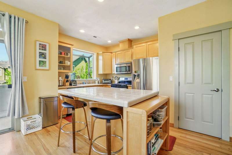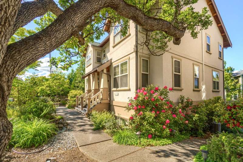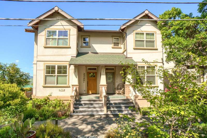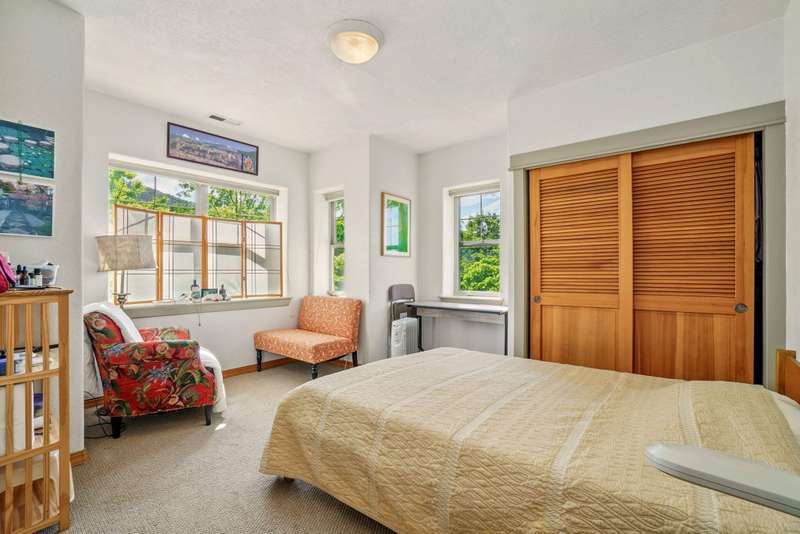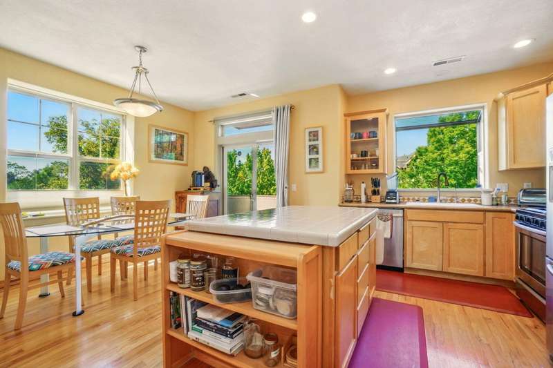 With perfect window placement, you are sure to appreciate this move-in ready, light and bright townhouse. The open kitchen features hardwood floors and has plentiful storage and cabinet space. It's also conveniently adjacent to the dining room, ideal for indoor entertaining. The living room is roomy and complete with a gas fireplace. Upstairs you'll find two primary suites and a laundry space. One of the primary suites offers a vaulted ceiling plus an outdoor patio. Third bedroom is located downstairs makes a great home office or studio. Finished attached two car garage with a work bench. Don't miss this great, Ashland opportunity.