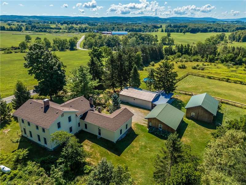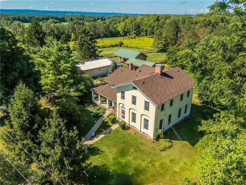 SPECTACULAR & RARE HISTORIC TAFT HOMESTEAD WITH OVER 21 HILLTOP ACRES & MILLION DOLLAR VIEWS! THIS "DREAM ESTATE" IS THE ONE YOU HAVE BEEN WAITING FOREVER! LOCATION! LOCATION! LOCATION! THIS IS THE ULTIMATE LOCATION FOR THE BEST OF COUNTRY LIVING WITH MANY UPDATES! REPLACEMENT COST OVER $2+ MILLION WITH MAJESTIC BRICK COLONIAL & CARRIAGE HOUSE, THREE CAR GARAGE, HORSE BARN WITH THREE STALLS & TACK ROOM, BARN OUTBUILDING & MORE! The TAFT HOMESTEAD has a wonderful history in Bloomfield being one of the most significant properties in the area! HISTORIC FRONT DOOR has a beautiful LEADED GLASS TRANSOM WINDOW & A RING BELL WITH HISTORIC LOCK & HARDWARE. UPON ENTERING THIS ONE OF A KIND PROPERTY YOU FEEL HISTORY ALL AROUND YOU WITH THE WELCOMING GRAND TWO STORY FOYER leading to the HALLMARK OF THIS HOME AN EXCEPTIONAL LIVING ROOM WITH FIREPLACE & HISTORIC MANTEL, BUILT IN CABINETRY, CUSTOM WOOD MOLDINGS & FLOORS. The FOYER & LIVING ROOM leads to a wonderful entertainment sized DINING ROOM with another fireplace & custom wood moldings! The KEEPING GREAT ROOM KITCHEN has custom cabinetry, stainless steel appliances, back staircase, brick wall, wood beams & JOTUL wood burning stove...ALL OPEN TO THE SPECTACULAR WRAP AROUND PORCH & SLATE PATIO TO TAKE IN THOSE BREATHTAKING HILLTOP COUNTRY VIEWS OF THE BRISTOL HILLS & HONEOYE LAKE AREA....and to be at one with nature! THE EXCITEMENT CONTINUES UPSTAIRS: FIVE SPACIOUS BEDROOMS in which two have FIREPLACES & ELEVATED COUNTRY VIEWS! PLUS UPDATED BATH! LOCATED ON CONN ROAD...a QUIET COUNTRY ROAD REMINISCENT OF A CHARMING NEW ENGLAND COUNTRYSIDE. With 21+ ACRES & 1,500+ ROAD FRONTAGE...with GREAT SUBDIVISION OPPORTUNITIES with the PASTURES & WOODLAND! This is the ULTIMATE IN HISTORIC COUNTRY LIVING WITH PRIVACY, BREATHTAKING VIEWS, & PRISTINE HISTORIC RESTORATION. THIS "DREAM ESTATE" HAS MANY UPDATES: ANDERSON THERMAL WINDOWS, TEAR OFF ROOF & MORE! NEARBY City of Canandaigua with great restaurants & shops......CANANDAIGUA LAKE & BRISTOL MOUNTAIN SKI RESORT offers recreational opportunities in the FINGER LAKES REGION! All this at an AMAZING VALUE!