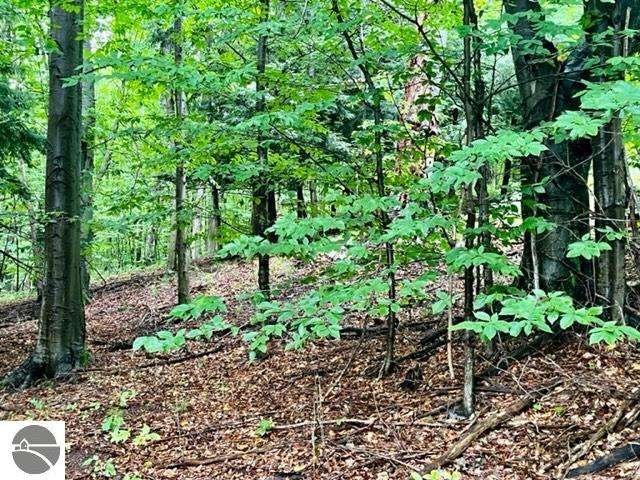 Mostly wooded hillside facing north and east as you head east down from the Village of Benzonia; Homestead Rd (Traverse Ave is Homestead Rd in Township) Hardwoods, some views, sloping, rolling and steep in areas. Lots of contours and challenges and good building for primary home or "cabin in the woods" yet close to town; village water available.