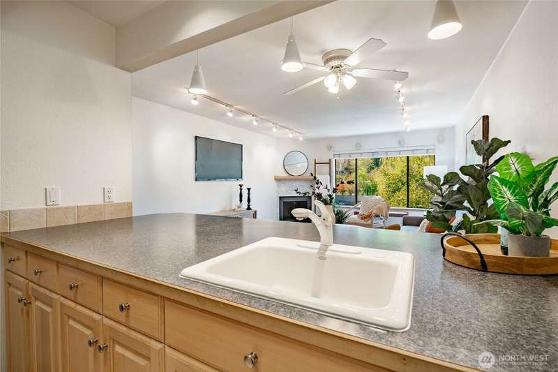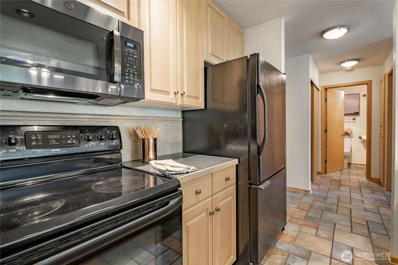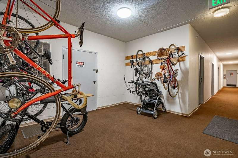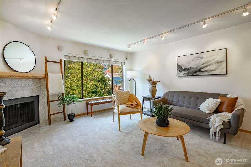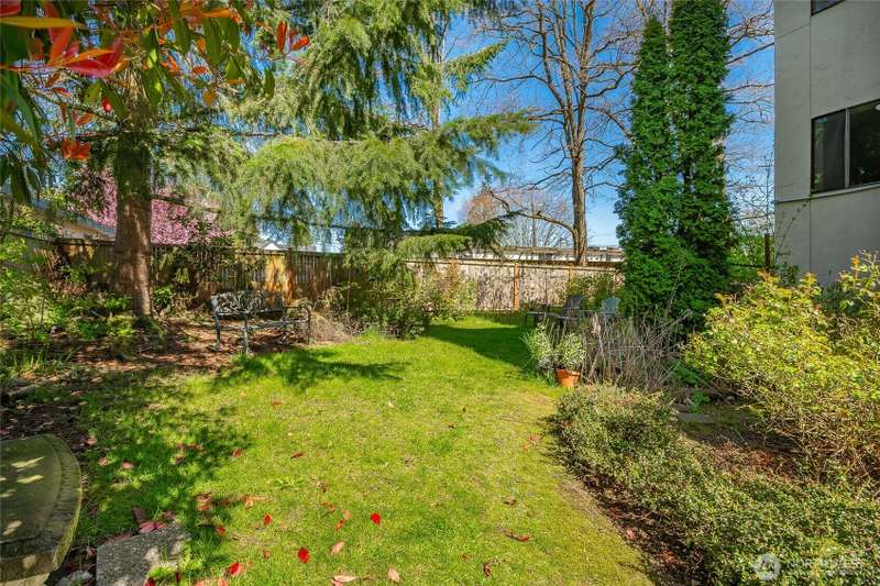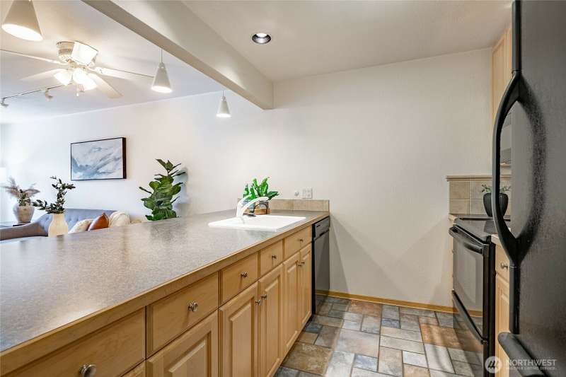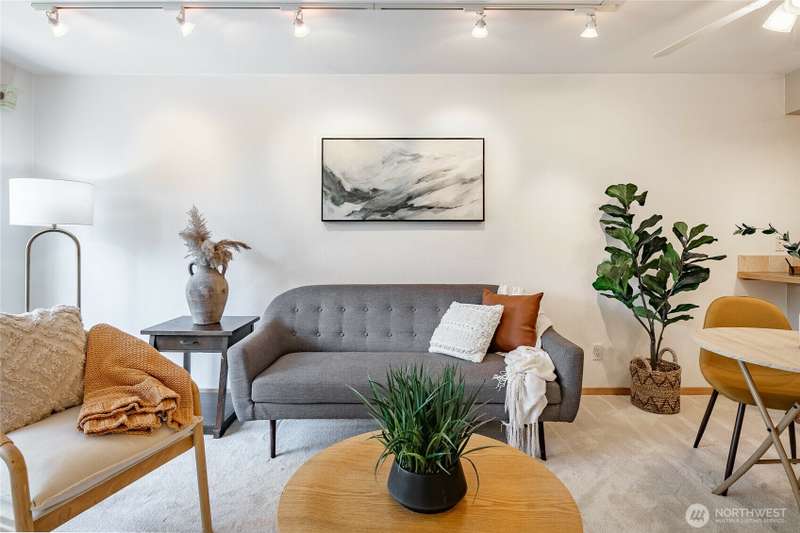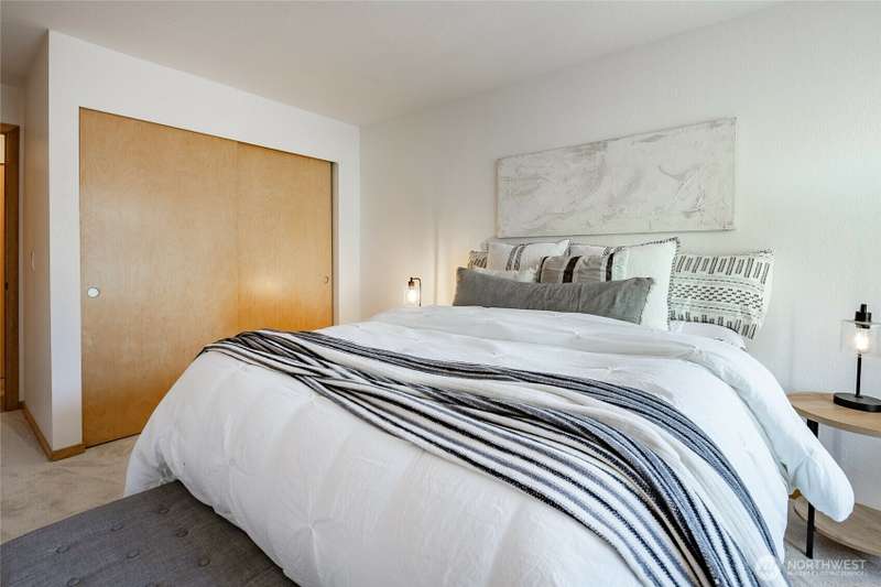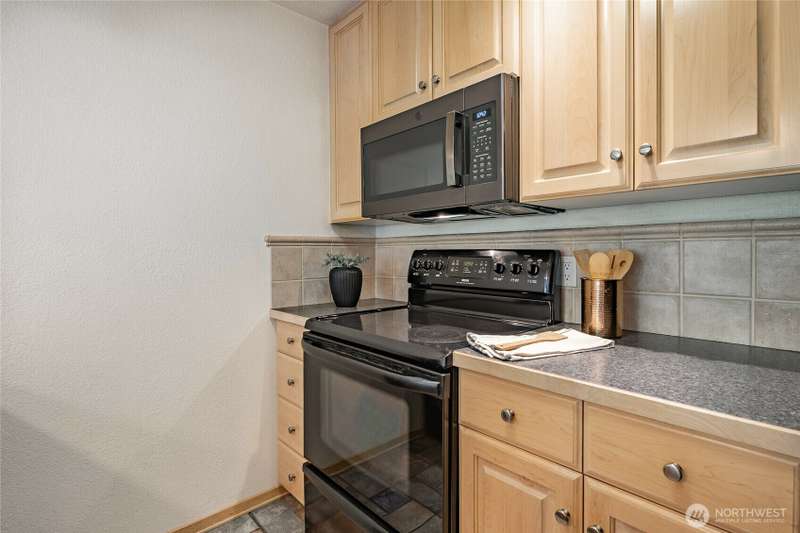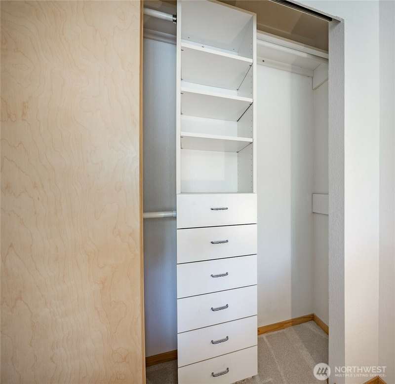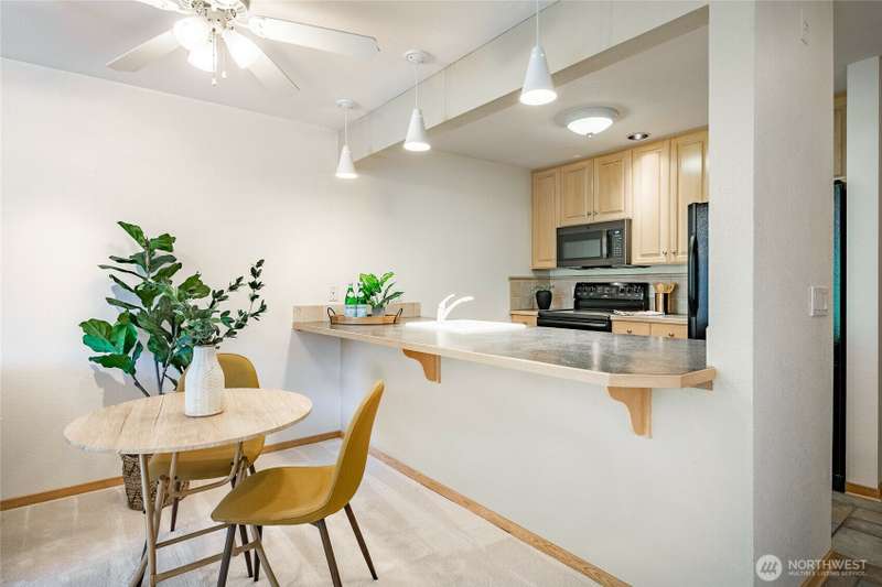 Discover this pristine TOP-FLOOR unit on the quiet side of the bldg, offering serene views overlooking the community park for utmost privacy. Ample storage, natural light & new carpeting in every rm. The kitchen opens to a spacious great rm, presenting seamless views of the DR & LR areas. Maple cabinetry in the kitchen, bthrm, and bdrm. The primary bdrm boasts exceptional storage solutions including a custom closet organizer and extensive built-ins. All appliances stay, in-unit W/D hookups, secure building entry, protected mailbox, private storage space, dedicated bike storage, & laundry rm. Prime location w/ easy access to dining & shops, Northgate, UW, I-5, bus lines, & light rail stations. Low-maintenance lifestyle. NO RENTAL CAP.