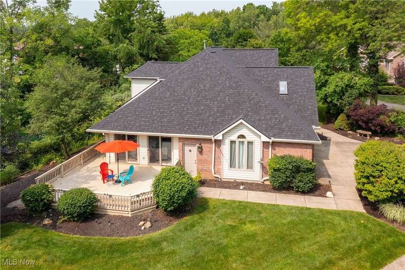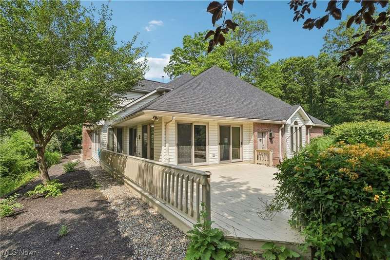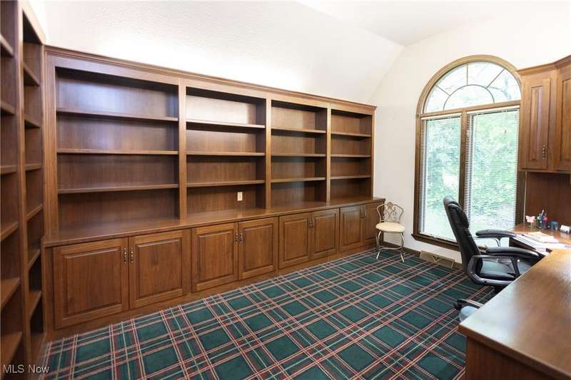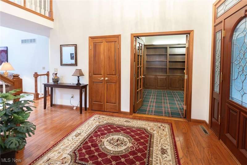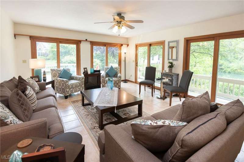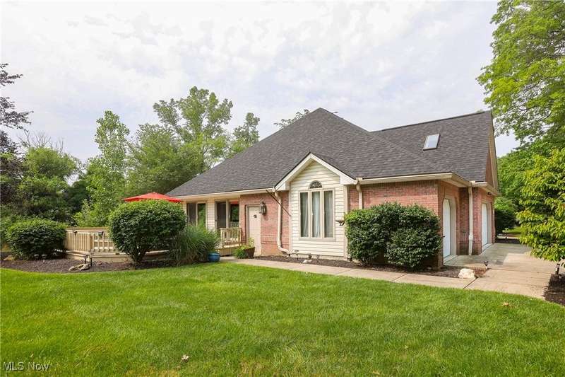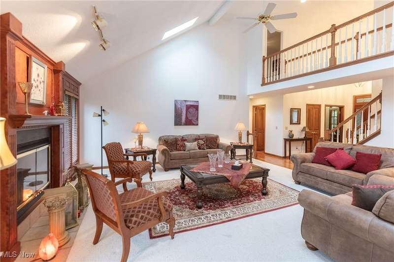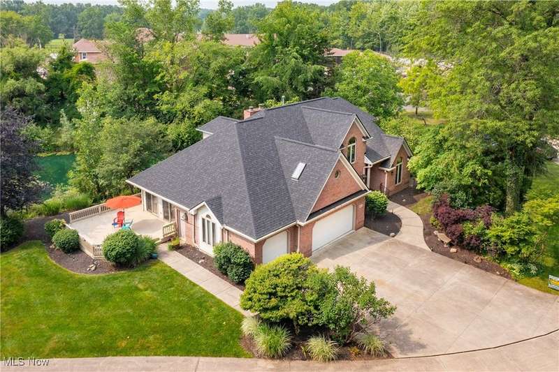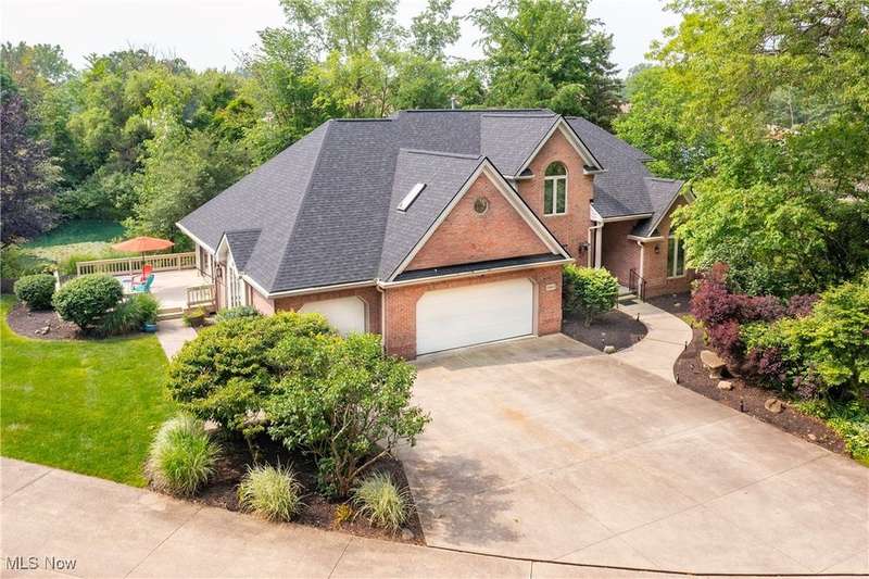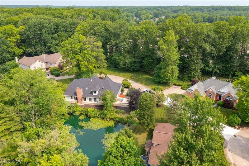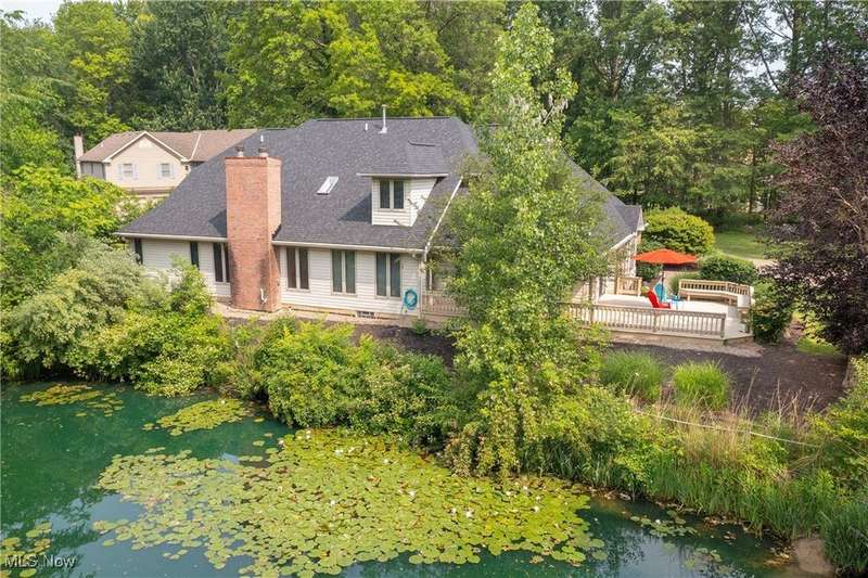 Custom builders home, upgrades throughout! Gracious, Elegant, and Effortless Living! Nestled on a wooded lot with serene pond views, this beautiful home offers timeless charm and modern comfort. A striking leaded-glass wood door opens to a dramatic two-story foyer with hardwood floors, leading to a vaulted living room with skylights, a stunning cherry wood fireplace wall, and elegant detailing throughout. The gourmet kitchen features Amish-crafted cherry-stained maple cabinetry, Corian countertops, a large center island, updated stainless steel appliances, and a sunlit dinette. A bright Florida room with ceramic tile flooring and four sliding glass doors opens to a wraparound deck overlooking lush landscaping and a peaceful pond. The first-floor primary suite offers a tray ceiling, custom walk-in closet, and a luxurious bath with a jetted tub and tiled garden shower. A refined study includes clerestory windows and custom Amish walnut built-ins - perfect for work or relaxation. Upstairs features two spacious bedrooms, a large full bath with Jacuzzi, and a versatile bonus room. The newly finished lower level includes a large recreation room with a fireplace and full bath. Ideal for entertaining or guests. Extra storage space. Additional highlights include a three-car garage. Two car garage has Nature Stone flooring. Third car garage is a heated workshop/storage that can easily be converted back to a three car. Three-zoned HVAC, wood casement windows, and exceptional quality throughout. All in a fabulous location with maintenance-free living.