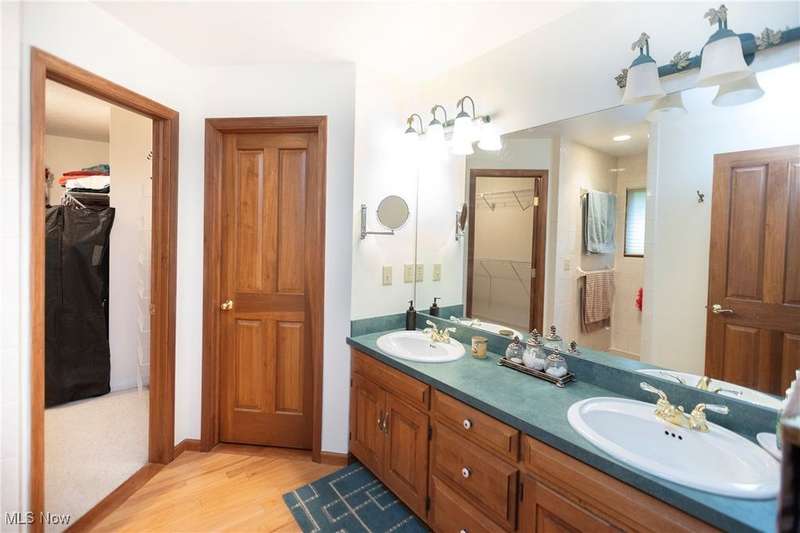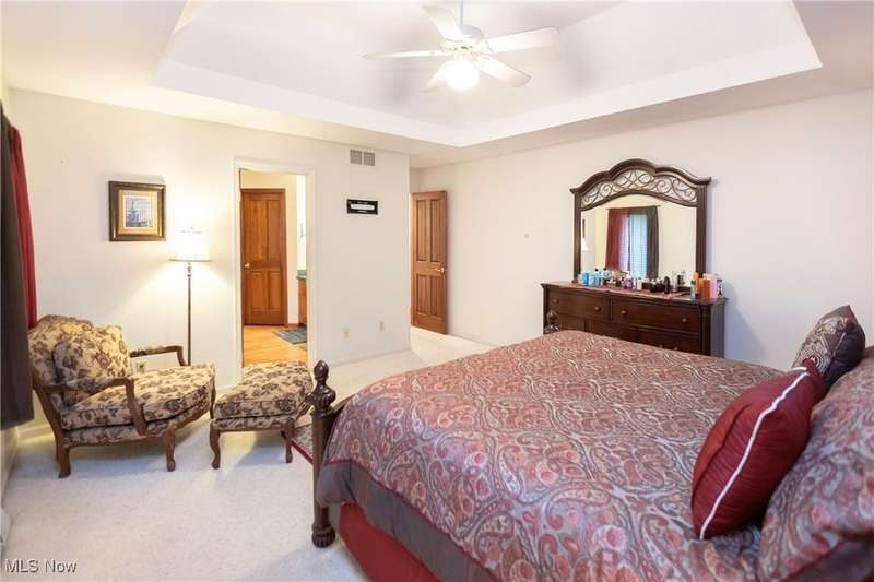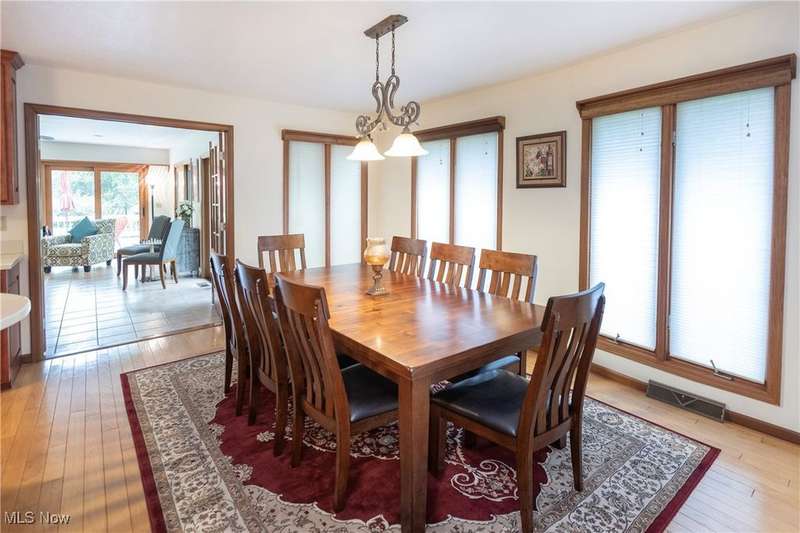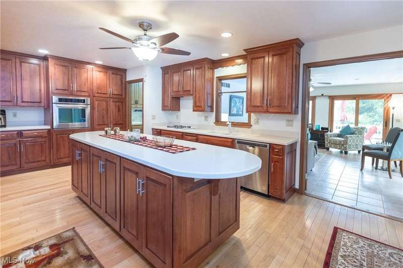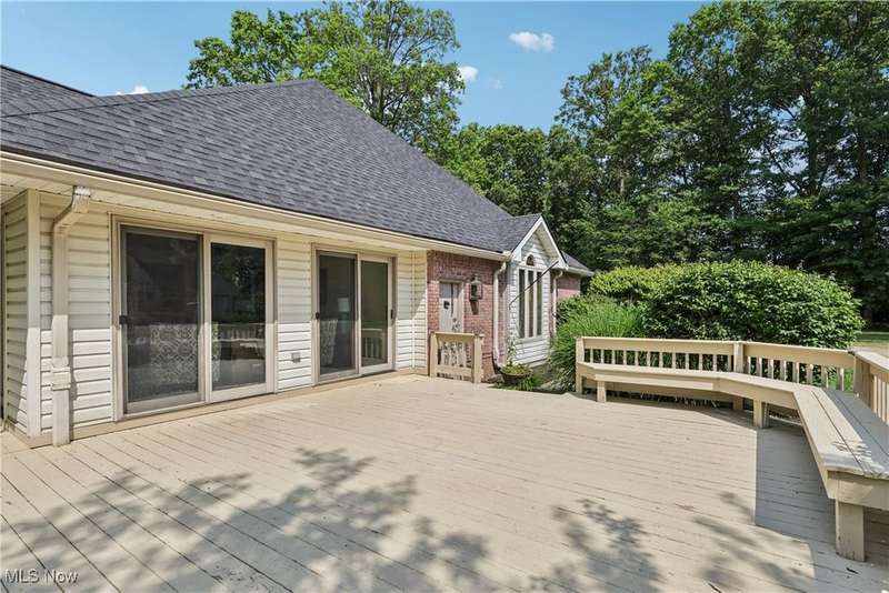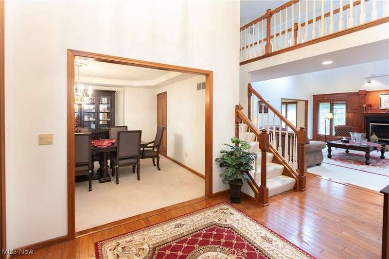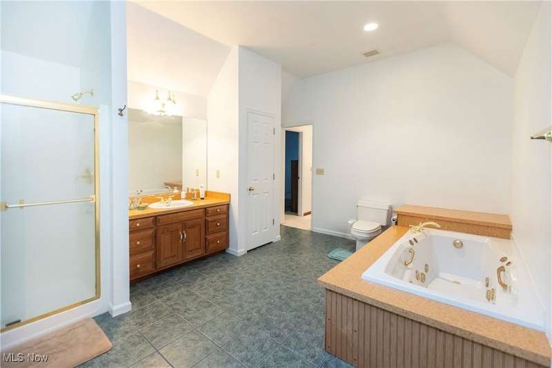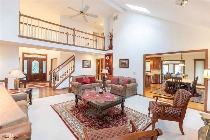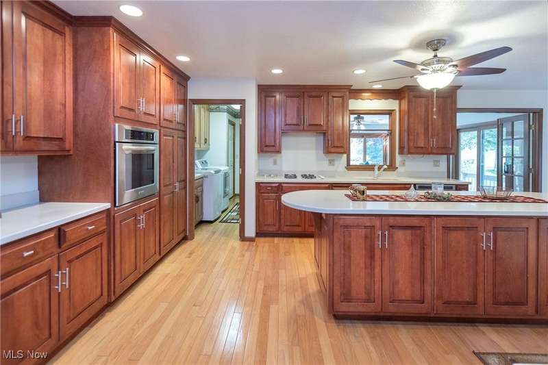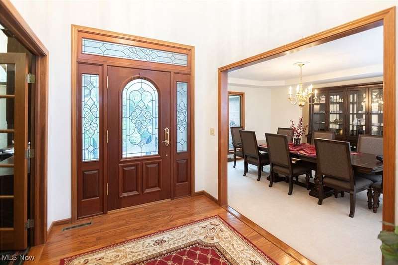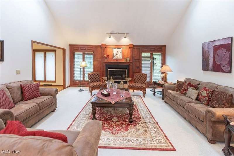 Custom builders home, upgrades throughout! Gracious, Elegant, and Effortless Living! Nestled on a wooded lot with serene pond views, this beautiful home offers timeless charm and modern comfort. A striking leaded-glass wood door opens to a dramatic two-story foyer with hardwood floors, leading to a vaulted living room with skylights, a stunning cherry wood fireplace wall, and elegant detailing throughout. The gourmet kitchen features Amish-crafted cherry-stained maple cabinetry, Corian countertops, a large center island, updated stainless steel appliances, and a sunlit dinette. A bright Florida room with ceramic tile flooring and four sliding glass doors opens to a wraparound deck overlooking lush landscaping and a peaceful pond. The first-floor primary suite offers a tray ceiling, custom walk-in closet, and a luxurious bath with a jetted tub and tiled garden shower. A refined study includes clerestory windows and custom Amish walnut built-ins - perfect for work or relaxation. Upstairs features two spacious bedrooms, a large full bath with Jacuzzi, and a versatile bonus room. The newly finished lower level includes a large recreation room with a fireplace and full bath. Ideal for entertaining or guests. Extra storage space. Additional highlights include a three-car garage. Two car garage has Nature Stone flooring. Third car garage is a heated workshop/storage that can easily be converted back to a three car. Three-zoned HVAC, wood casement windows, and exceptional quality throughout. All in a fabulous location with maintenance-free living.