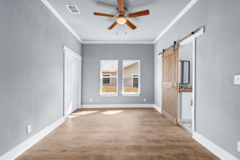 Experience the perfect blend of historic charm and modern design in this single-story Beacon Hill Craftsman. Large windows, crown molding, recessed lighting, transom windows, and charming tall ceilings create an airy, light-filled atmosphere. Flowing seamlessly from the open-concept living and dining spaces, the kitchen offers generous counter space, soft-close cabinets with built-in spice rack, rotating corner shelves, and a timeless white subway tile backsplash. Barn doors throughout the home add character and functionality. Retreat to the private primary suite with a generous walk-in closet and spa-inspired bath featuring an oversized tiled shower and double vanity. The secondary bath also boasts double vanities and a convenient entry for both secondary bedrooms. The inviting covered front porch welcomes you home, and the large backyard provides space for entertaining, gardening, or pets to play. Ideally located near San Pedro Park, downtown, and IH-10. - 10/20/2025 3:17:33 AM