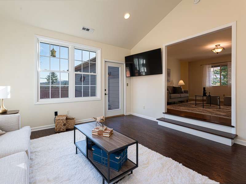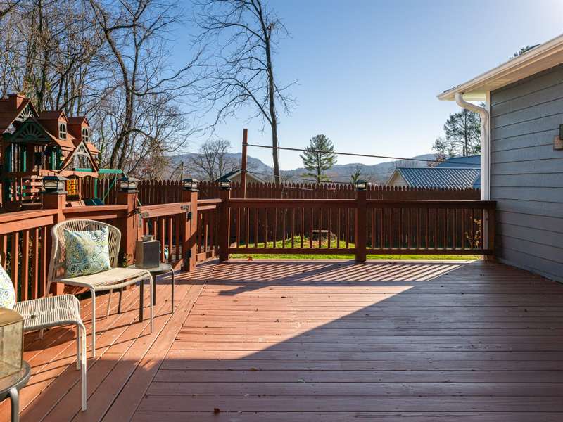 Like new 4-5 BR/ 3.5 Baths in south Asheville. Conveniently located off Sweeten Creek Rd just minutes from downtown Asheville and I-40. Tucked away at the end of the street offering plenty of parking for family & guests.Long range mountain views, spacious fenced-in flat yard, large wooden deck with great privacy. From the moment of entry, the open living room, kitchen, dining area and family room flow seamlessly allowing for large group gatherings or small intimate conversations all within the main level. Two Primary Bedrooms, one on main level and second located upstairs offering privacy, mountain views, reading room/ office, and luxurious Primary Bath. Open kitchen with breakfast bar overlooking dining area and living room. This home is filled with natural light from all sides. Separate backyard entrance in to mud room, A must see home for multi-generational living, entertaining or quiet reflection. Move-in condition with a Pre-Inspection offered to Buyers.