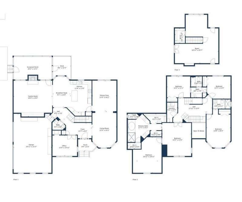 This is the one you have been waiting for! Premier cul-de-sac corner lot in the HAMPTONS! Don't miss this rare opportunity to own your dream home with a serene outdoor oasis including expansive screened in back porch, lush gardens, deck, brick paver patio and fire pit. Upon entering this bright and airy spacious home, you will notice the 2 story foyer and open staircase. The light filled main level office is to your left and open living room and dining room to your right. Walking into the large white kitchen with granite countertops, you will appreciate the open feel and natural light throughout. The great room with high ceilings, stacked stone fireplace and built-in bookshelves with cabinets has plenty of space for family gatherings. Walk out onto the inviting screened-in porch which opens to a massive brick paver patio and fire pit area on one side and a deck on the other side- an entertainer's delight! Upstairs, you will love the sizeable primary suite that includes an additional bonus room and a completedly renovated bathroom retreat with heated floors! The secondary bedrooms are substantial in size and one includes a recently renovated full bath and the other 2 bedrooms share a jack-n-jill bath. On the finished 3rd floor you have additional room for an exercise space, play area or craft room; as well as an office area and additional storage. The Hamptons has amazing amenities; including 2 pools,(One that is right around the corner!) 2 clubhouses, 2 playgrounds, tennis and pickle ball courts. Don't wait- this home wont last long!