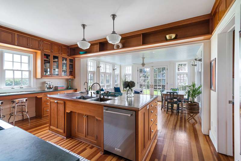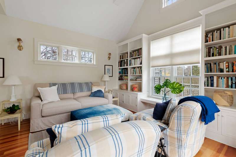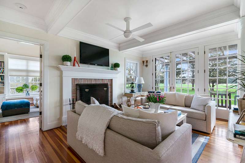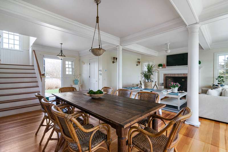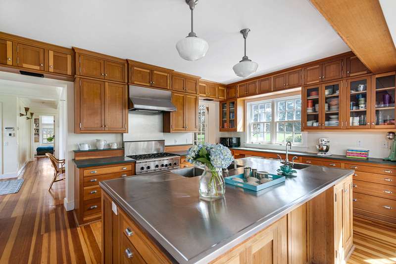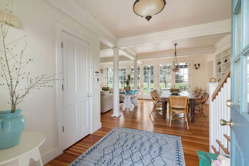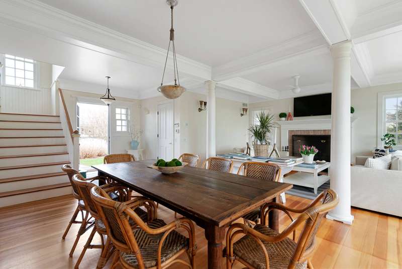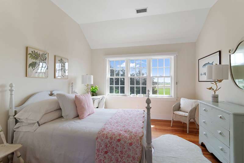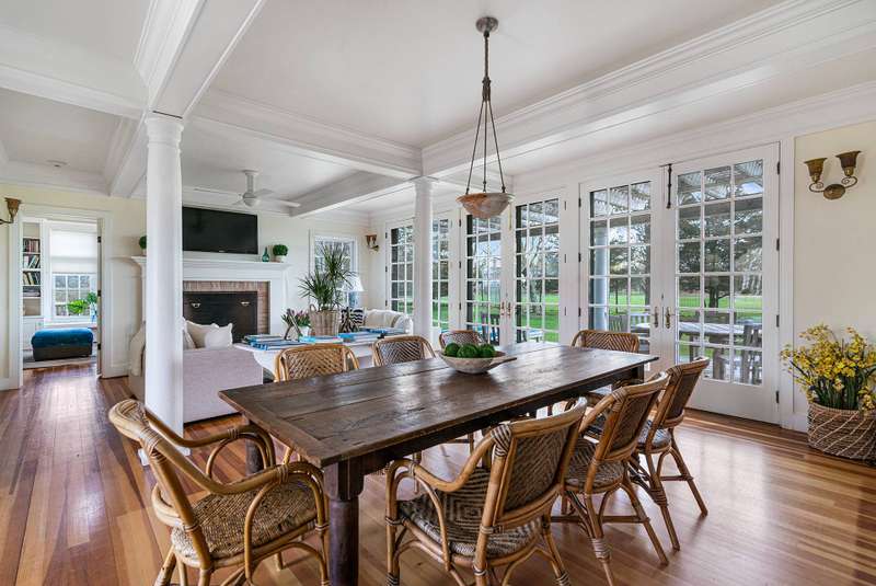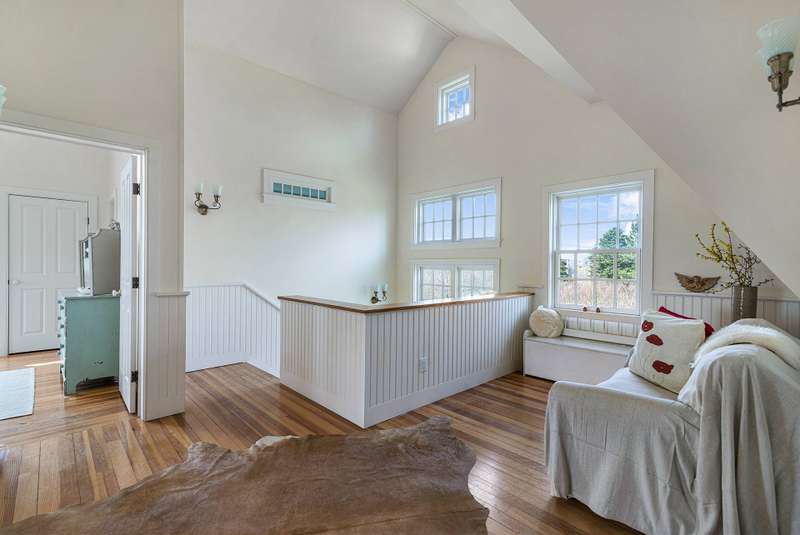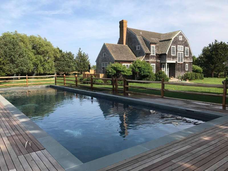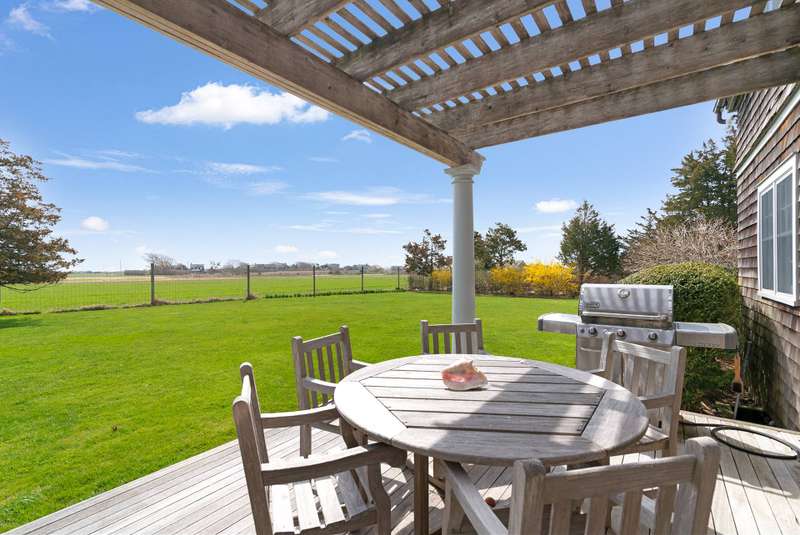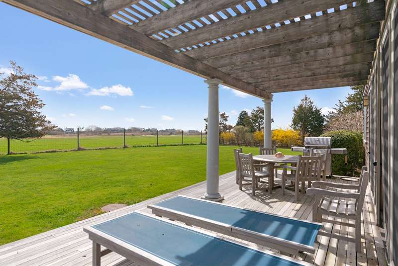 Down a flag drive is a magical spot bordering a farm. The property offers sweeping views and sounds of the ocean waves. You are greeted by a stand of hydrangea and flowering trees. This 3 bedroom 3 and 1/2 bath home was designed by a Southampton architect. The open floor plan offers lots of light and French Doors to let the outside inside. The first floor has a living room with an especially tall fireplace and dining area. There is a state of the art kitchen open to a sunroom for dining and relaxing. A pantry, laundry room and half bath are off of the kitchen. There is a library that could work for additional sleeping with a full bathroom. Second floor has master bedroom bathroom suite with a deck that provides magnificent views, two additional bedrooms and hall bathroom, and a loft/office area. There are ceiling fans, an outdoor shower, and large deck for summer entertaining. It is easy to bike to Sagg Main Beach or Gibson Beach and to fish off of the bridge on Bridge Lane. You could also kayak to the beach from the bridge on Bridge Lane where kayaks are available for rent. Very special home with architectural integrity. A 16' x 54' heated Gunite pool is off to the side and child safe. Owner just refinished all floors and has a no pet polic..Listing ID;754727
