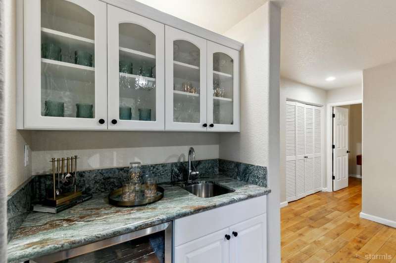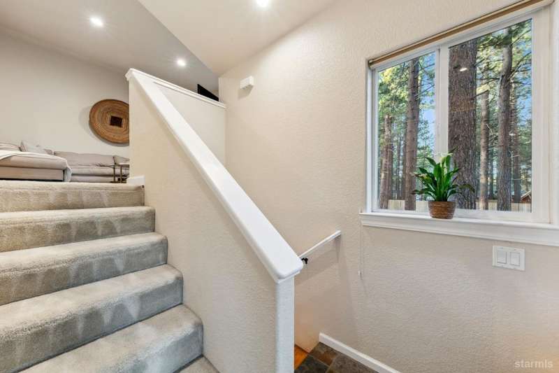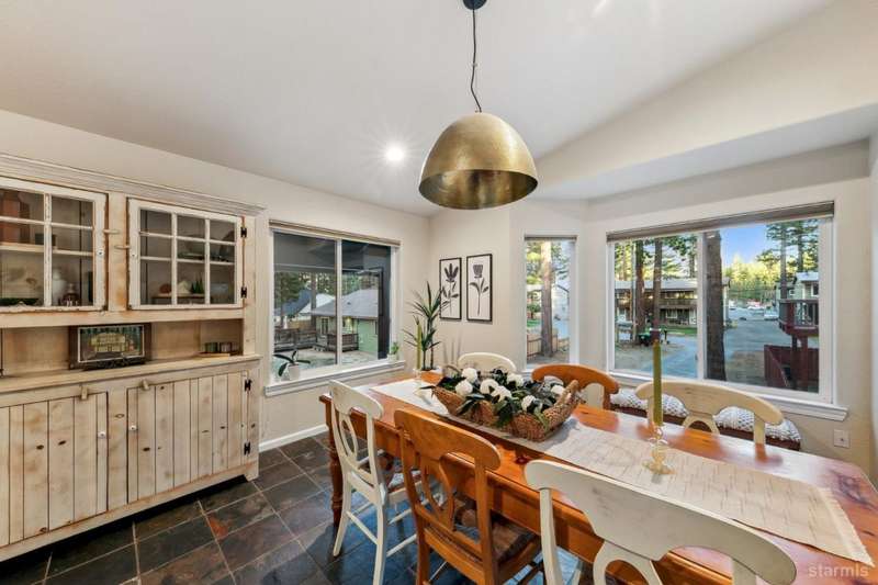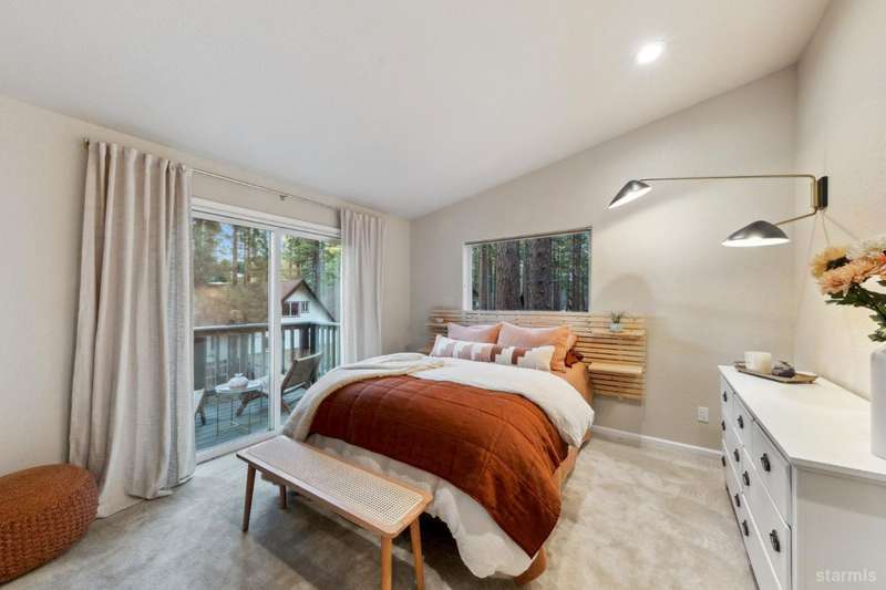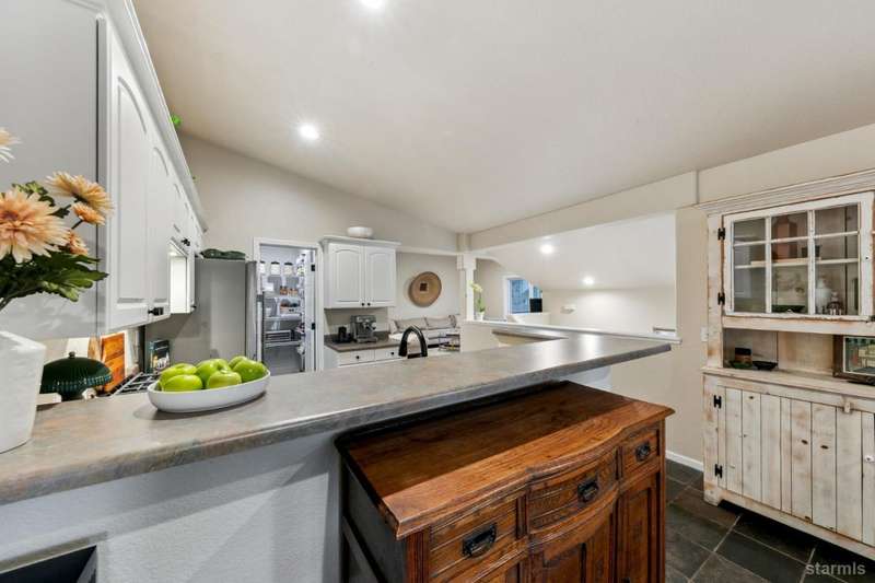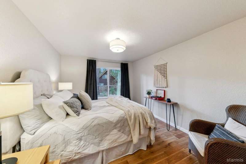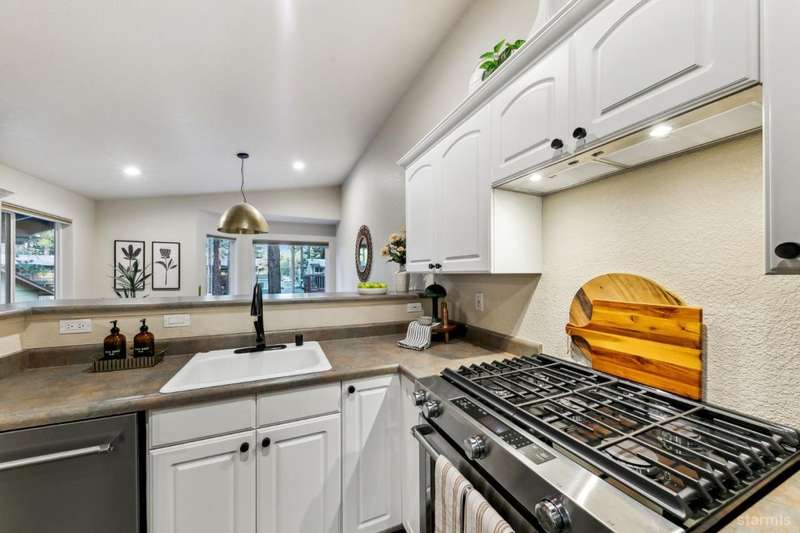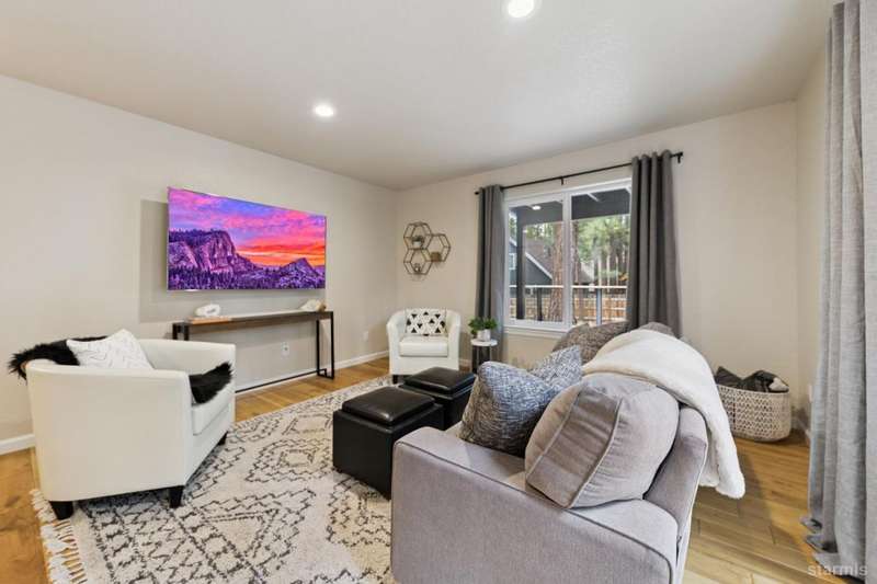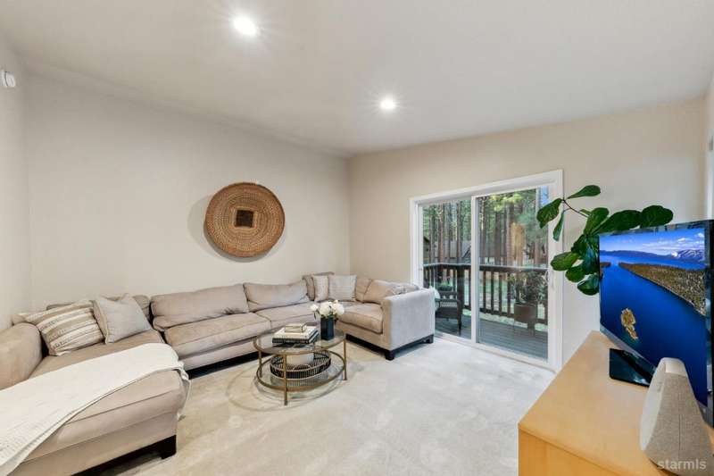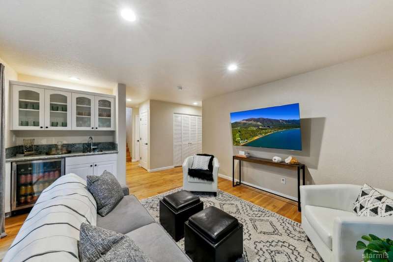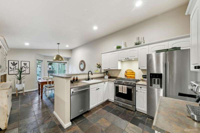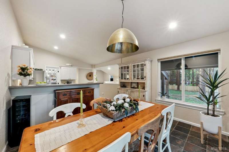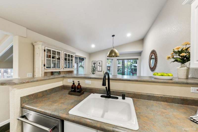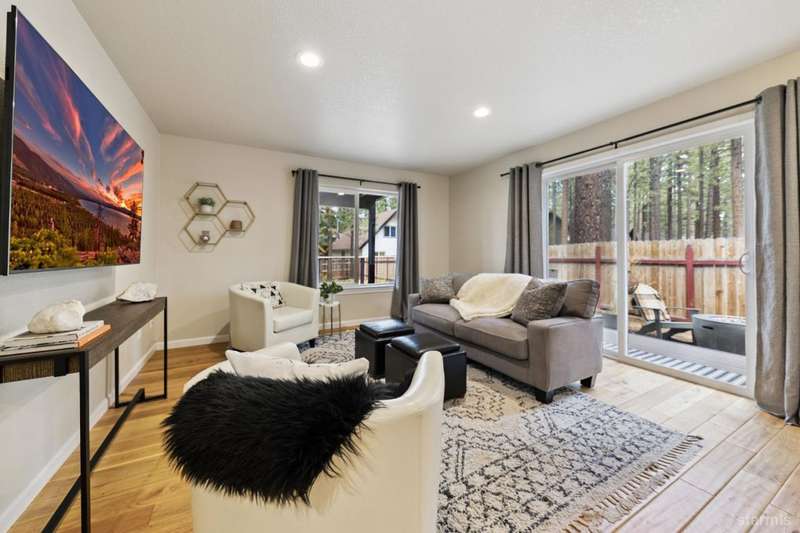 Updated townhouse in Tahoe Island Park! This beautifully maintained 1,736 square foot townhouse offers the ideal blend of comfort and convenience with its thoughtful layout and recent upgrades.Upstairs, you'll find an open living area featuring vaulted ceilings and plenty of natural light. The recently updated kitchen features brand-new stainless-steel appliances, including a gas range, complemented by a walk-in pantry and slate flooring. Step out onto the upper deck from the living room perfect for summer barbecues and enjoying mountain air.The primary bedroom has a private balcony, vaulted ceilings, and recessed lighting. Downstairs, a spacious family room with stunning hand-hewn hardwood floors and includes a wet bar with mini refrigerator ideal for entertaining.Outdoor living shines with the fully fenced backyard which offers a private space for relaxation.The townhouse's quality construction and meticulous maintenance ensure worry-free ownership, while its central location puts you moments from Lake Tahoe's beautiful beaches, extensive biking trails, and excellent dining and shopping options. The single car garage offers plenty of room for a vehicle and extra storage for all of the Tahoe gear. Whether as a permanent residence or low-maintenance vacation home, this townhouse offers the quintessential Tahoe lifestyle you've been dreaming of.