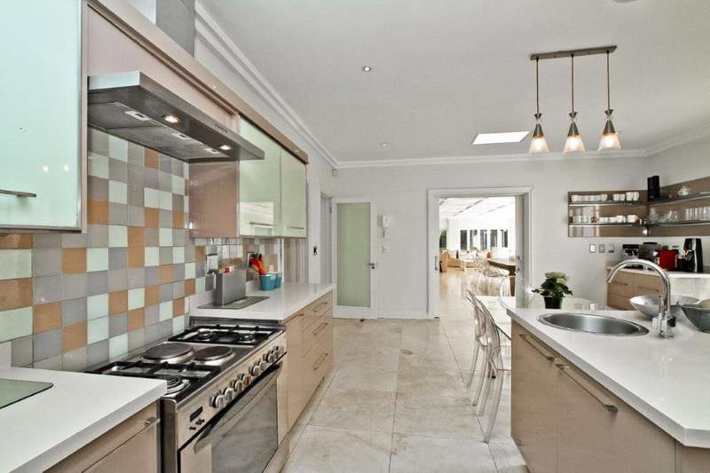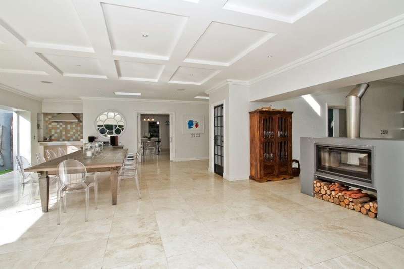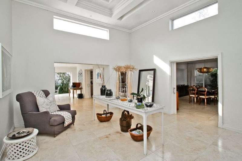 Seller inviting offers. Stunning 4 bedroom home with excellent proportions, open plan receptions and feature skylights sure to impress! Travertine flooring throughout, contemporary eat-in kitchen with Elba Gas Stove and built in conveniences. Separate dining with adjoining study / family room. Stack back doors invite you out to a spectacular garden and heated pool setting with separate private versatile Gym / Studio. Two quality feature fireplaces! All bedroom en-suite, a luxurious master bedroom with interleading study. Outdoor showers off the main suite and 2nd bedroom. Heated towel rails. Additional features include, 40 KVA Diesel Generator, 2 Solar Geysers, full fibre, auto irrigation, aluminium shutters and stacking doors. So many extras, come and indulge yourself. Triple Garage, double staff accommodation and excellent security throughout.