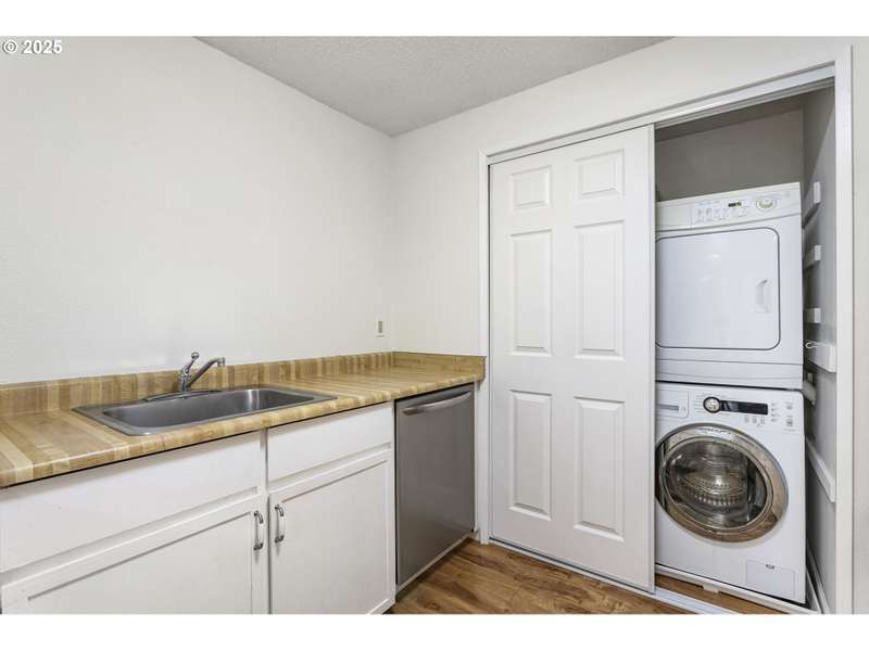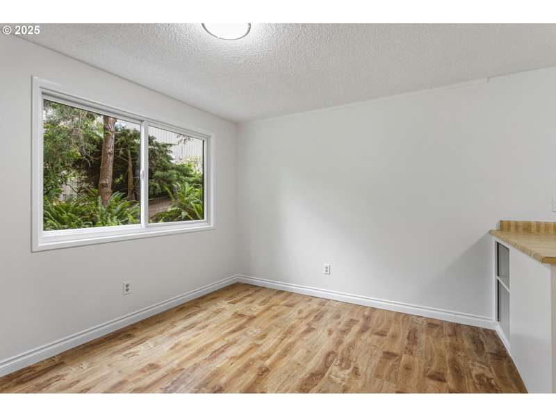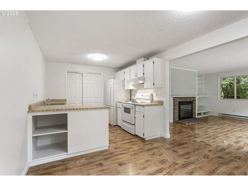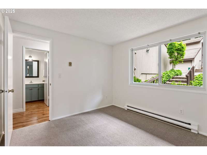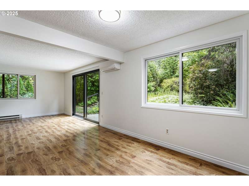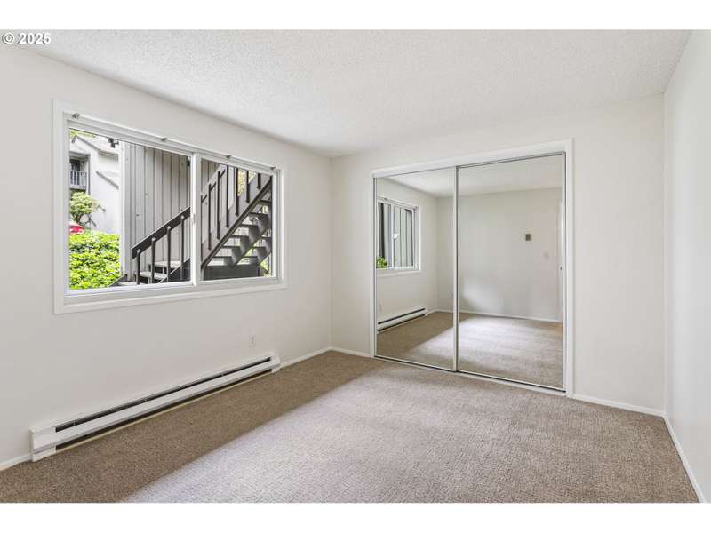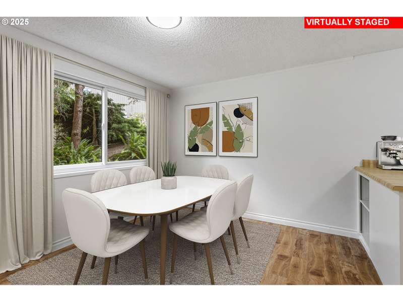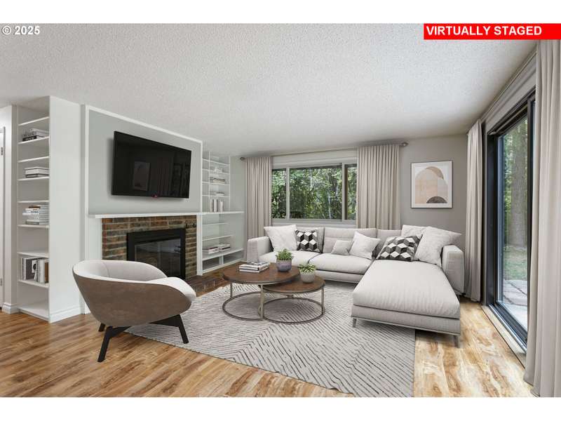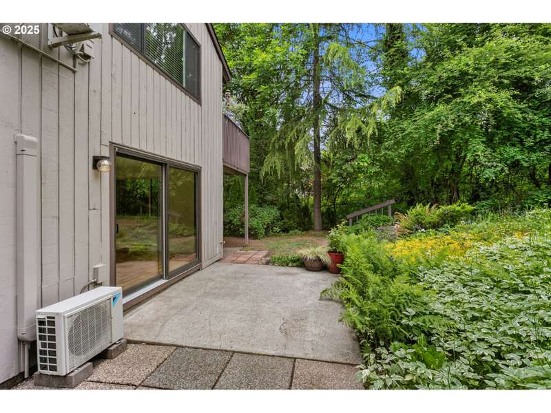 Nestled into a wooded greenspace, this well-maintained ground floor condo combines comfort and convenience with thoughtful updates. New Andersen windows + patio doors, new mini-split heat pump, updated flooring and fresh paint throughout. An easy living contemporary floor-plan features a spacious living room with a cozy wood-burning fireplace and an open-concept kitchen and dining area, perfect for entertaining or quiet nights at home. A roomy primary suite offers a tranquil retreat with forested views, tandem closets, and a private bath with walk-in shower. A second bedroom offers versatility as a guest room or an ideal home office. Outside you’ll find plenty of space to relax on the patio and enjoy the natural buffer of the generous greenspace and mature landscaping. Private parking spot in addition to a garage with storage loft. HOA covers water, sewer, trash, landscaping and exterior maintenance. Convenient location offers easy access to shopping, dining, and parks.