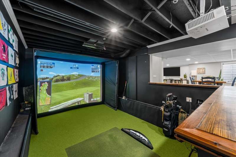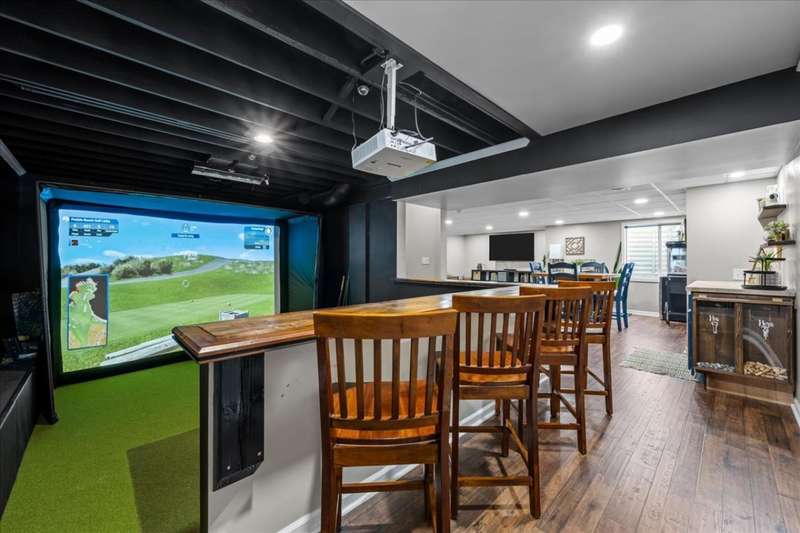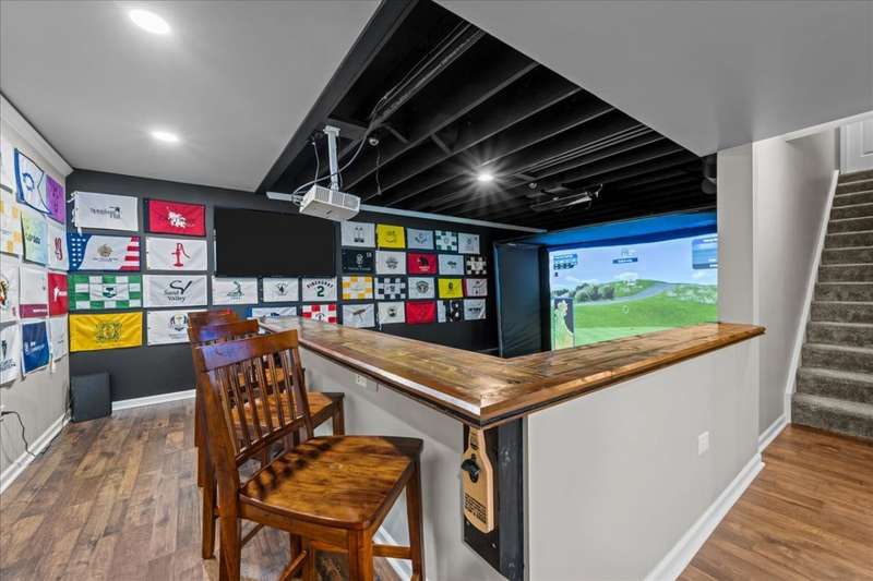 Welcome to this rarely available and truly exceptional Blue Stem Platinum III model, where modern elegance meets thoughtful functionality in one of the most desirable locations in North Mill Creek. Backing directly to the 16th hole of Tanna Farms Golf Club, this home offers stunning backyard views and coveted privacy with no neighbors behind-an absolute dream setting! Step inside to find gorgeous engineered hardwood floors that flow throughout the open-concept main level, beautifully illuminated by the natural light pouring in from the dramatic two-story family room windows. The spacious and airy layout is perfect for everyday living and effortless entertaining. At the heart of the home is your extra-large gourmet kitchen-a chef's delight featuring white cabinetry, granite countertops, a stylish tile backsplash, double ovens, a gas cooktop, and a large island ideal for gathering. Enjoy the convenience of a walk-in pantry and a full suite of stainless steel appliances, all thoughtfully designed to elevate your culinary experience. Additional main floor highlights include a private home office with elegant glass-panel doors and a convenient laundry room-both adding to the functionality and flow of the home. Upstairs, retreat to your luxurious primary suite overlooking the serene golf course. This peaceful escape boasts two walk-in closets and a spa-like ensuite bath featuring dual vanities, a soaking tub, and an oversized separate shower. Three additional bedrooms offer generous space for family and guests-Bedroom 2 includes a private ensuite, while Bedrooms 3 and 4 share a well-appointed Jack-and-Jill bath. AND THERE'S MORE! Step into a basement unlike any other-a dynamic, high-end retreat designed for play, performance, and pure relaxation. At the heart of this versatile space lies a state-of-the-art golf simulator, giving you access to legendary courses from around the world-no travel required. Whether you're fine-tuning your swing or teeing off at Pebble Beach, this immersive setup brings the game to life with precision and realism. Not a golfer? This space is an athlete's dream in disguise. With room for a batting cage, basketball drills, or a fully equipped personal gym, you'll find the perfect zone for every kind of training or workout routine. It's a custom canvas for champions at every level. Prefer to unwind? With just a few clicks, the high-definition simulator projector transforms into a home theater experience, streaming all your favorite platforms. Cozy up for a family movie night, binge your go-to series, or host the ultimate game-day gathering. This incredible space also includes a dry bar, additional living space, a full bathroom, a 5th bedroom and ample storage. No matter your pace-high energy or laid back-this basement delivers. Bold in concept and flexible in function, it's more than just a lower level; it's your new favorite destination. This is your chance to own a truly turn-key, show-stopping home in a quiet, pi