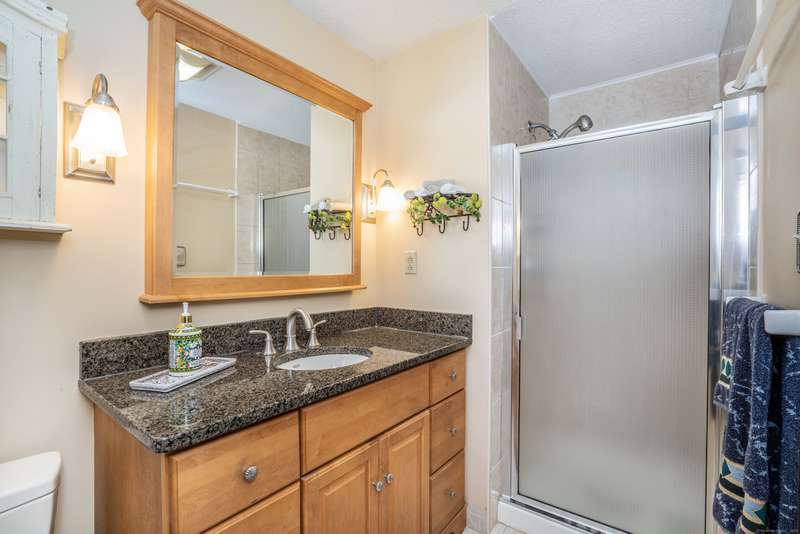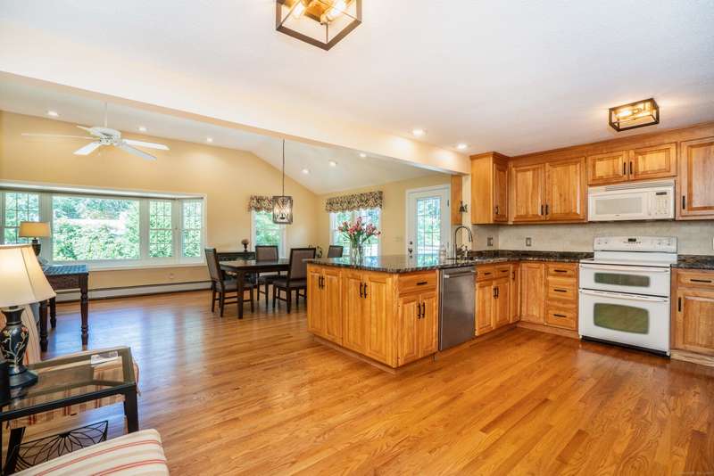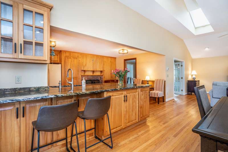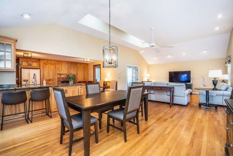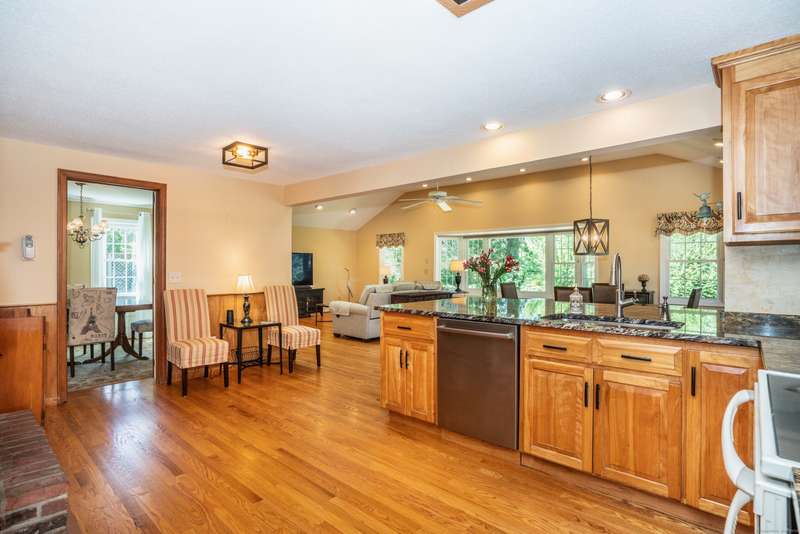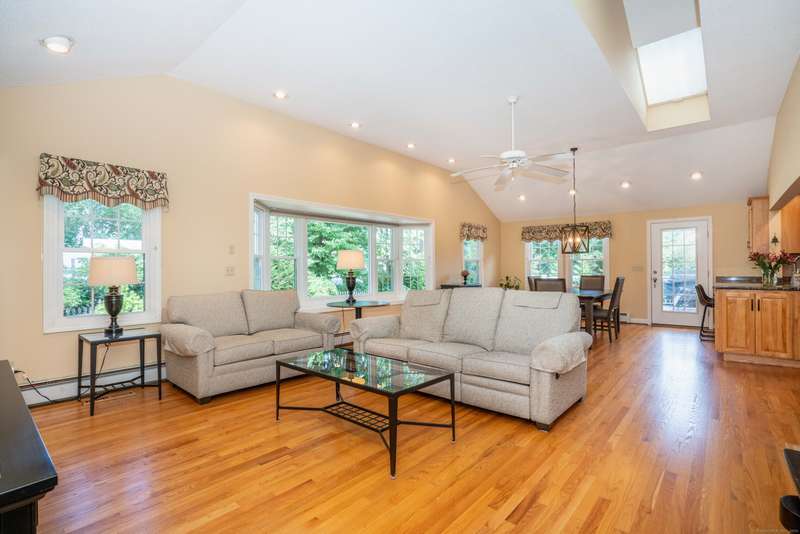 Welcome to your new home in one of West Hartford's favorite neighborhoods, ideally situated just minutes from all the schools, shopping, dining, and parks. This beautifully maintained property offers 3 to 4 bedrooms, 3 full baths, and the perfect blend of comfort and functionality. Step inside and be greeted by a sunny large living room with a gas fireplace perfect for cold winter days. Or enjoy all your family get togethers in the amazing great room just off the kitchen, featuring 2 skylights and a vaulted ceiling-ideal for entertaining or relaxing with friends. The adjoining kitchen has a breakfast bar and another gas fireplace. These rooms are connected to the deck, perfect for summer gatherings or quiet morning coffee. The bedroom area, which is on the same level, has a study (which could be a bedroom), the primary bedroom with an ensuite full bath and then 2 more bedrooms and another remodeled full bath. Downstairs the lower level offers even more living space with a generous rec